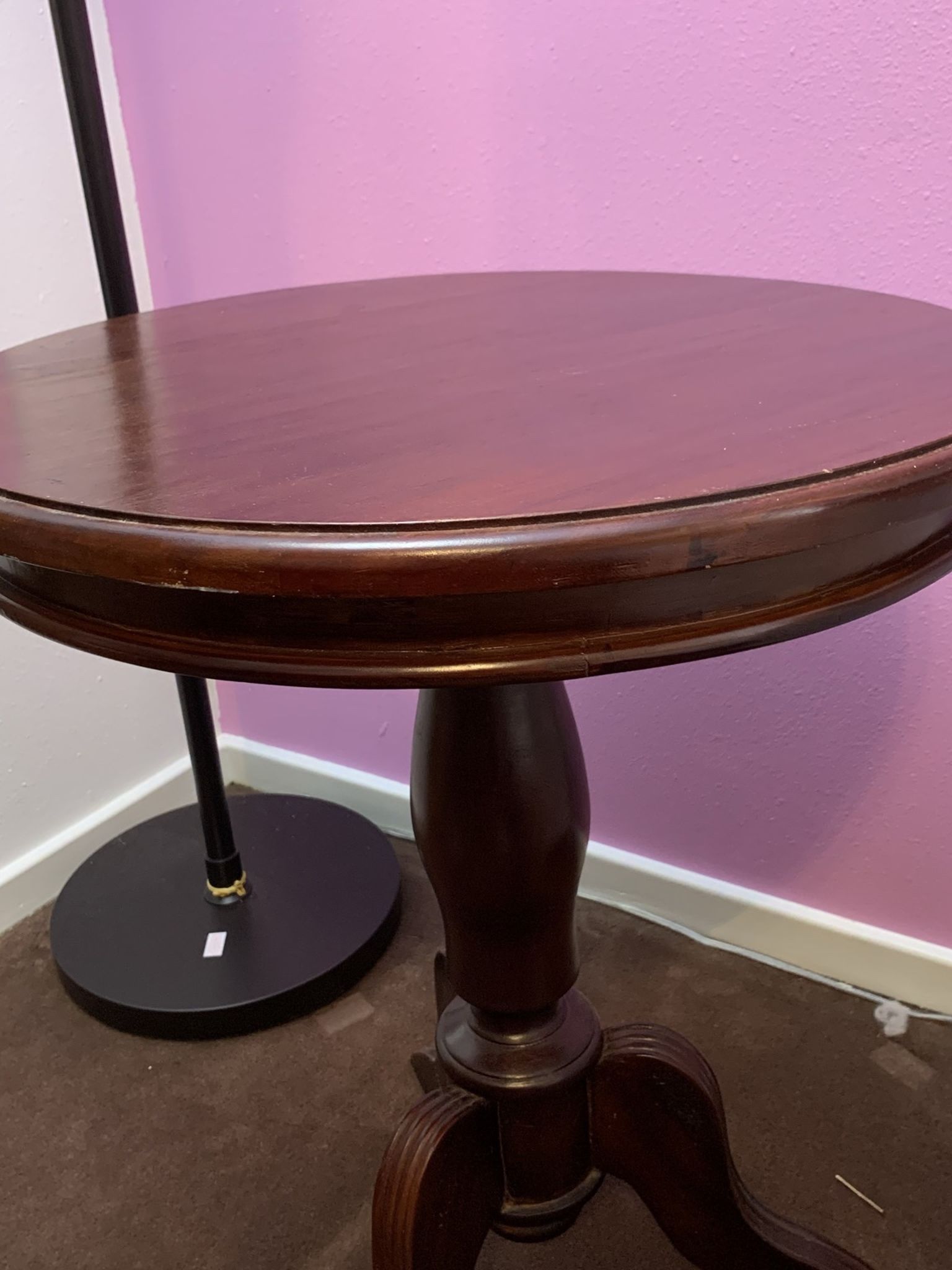 Pretty much brand new red wood side table. We loved this but just are changing things around.