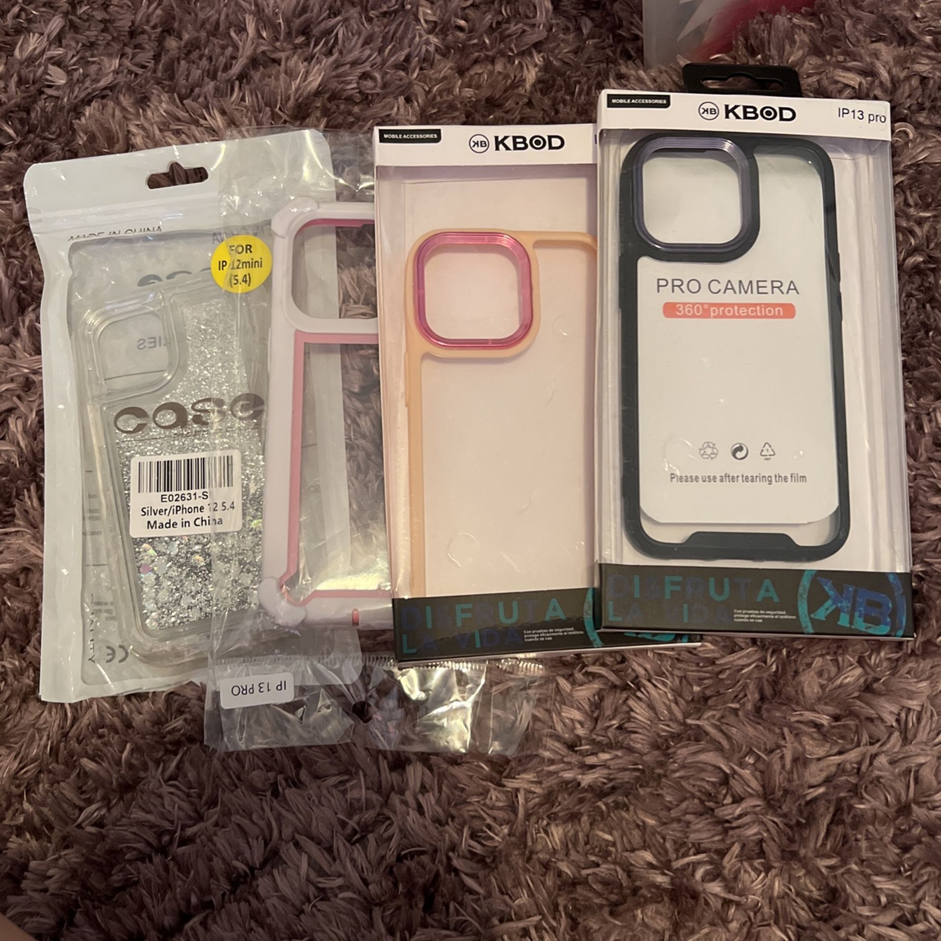 Iphone pro 13 = 5 each Iphone 12 mini = 8 A20/A30 galaxy aqua color= 5 A20/A30 galaxy hotpink= 5 A20/A30 galaxy feathers pink= 5 A20/A30 galaxy purple glitter and screen protector = 10