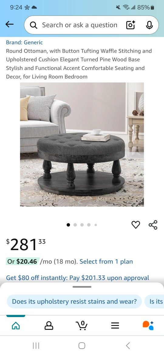 42in Tufted Ottoman Gray NEW