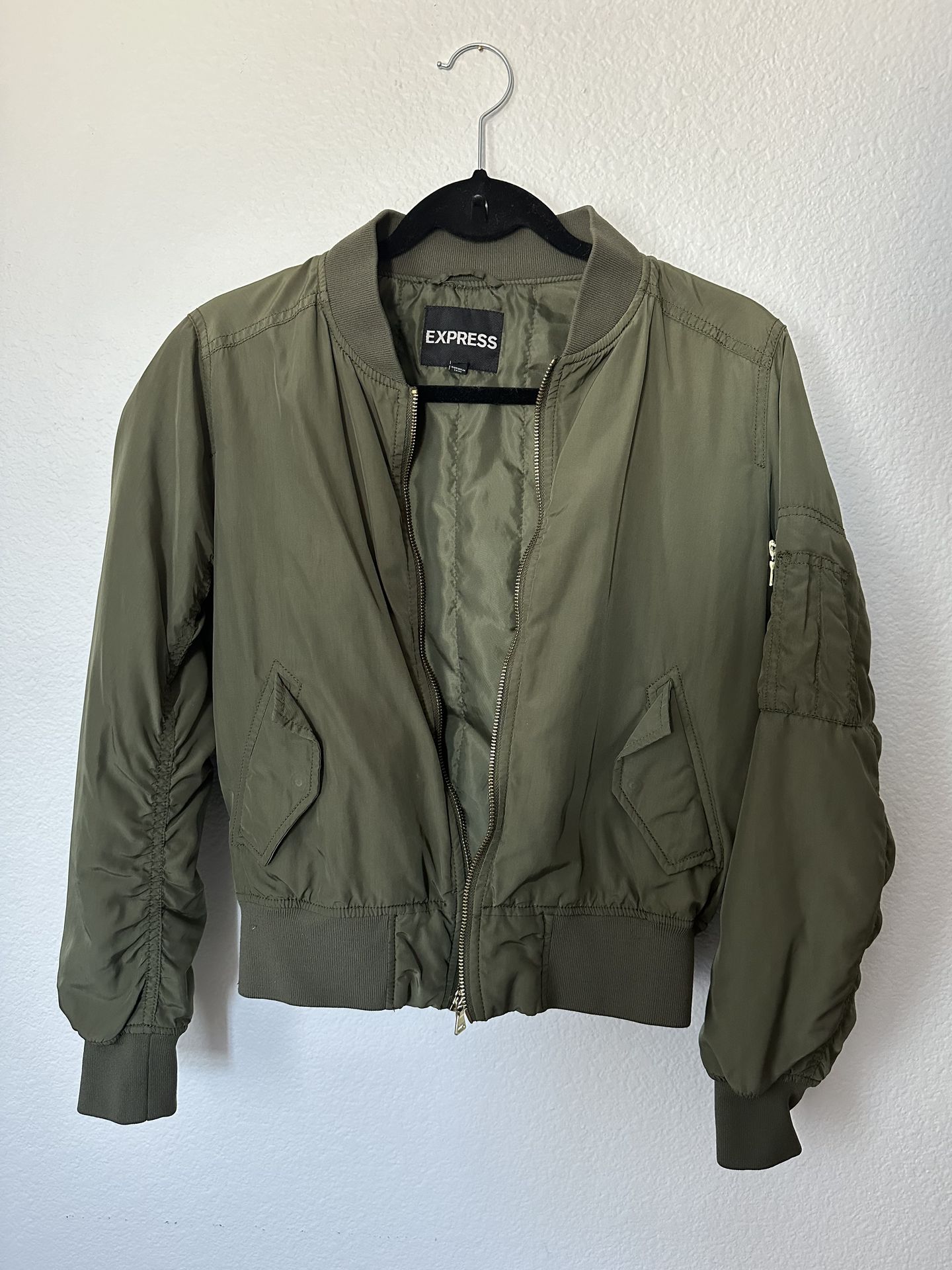 Condition: like new Size: xsmall Chic bomber jacket by Express. Features a classic design with ribbed cuffs. Ideal for casual wear. Cash only. No returns or exchanges. If it’s still listed, it’s still available.