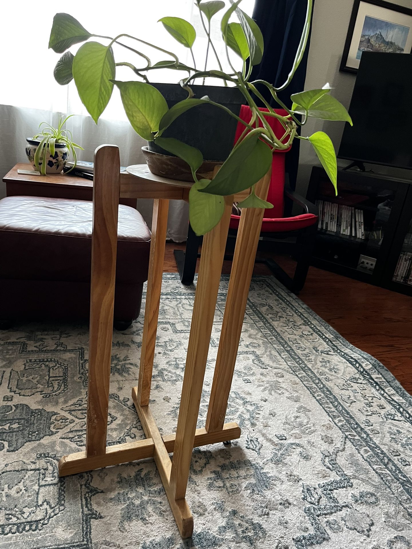 4 legged wooden plant stand!! One leg has been clawed at by a cat