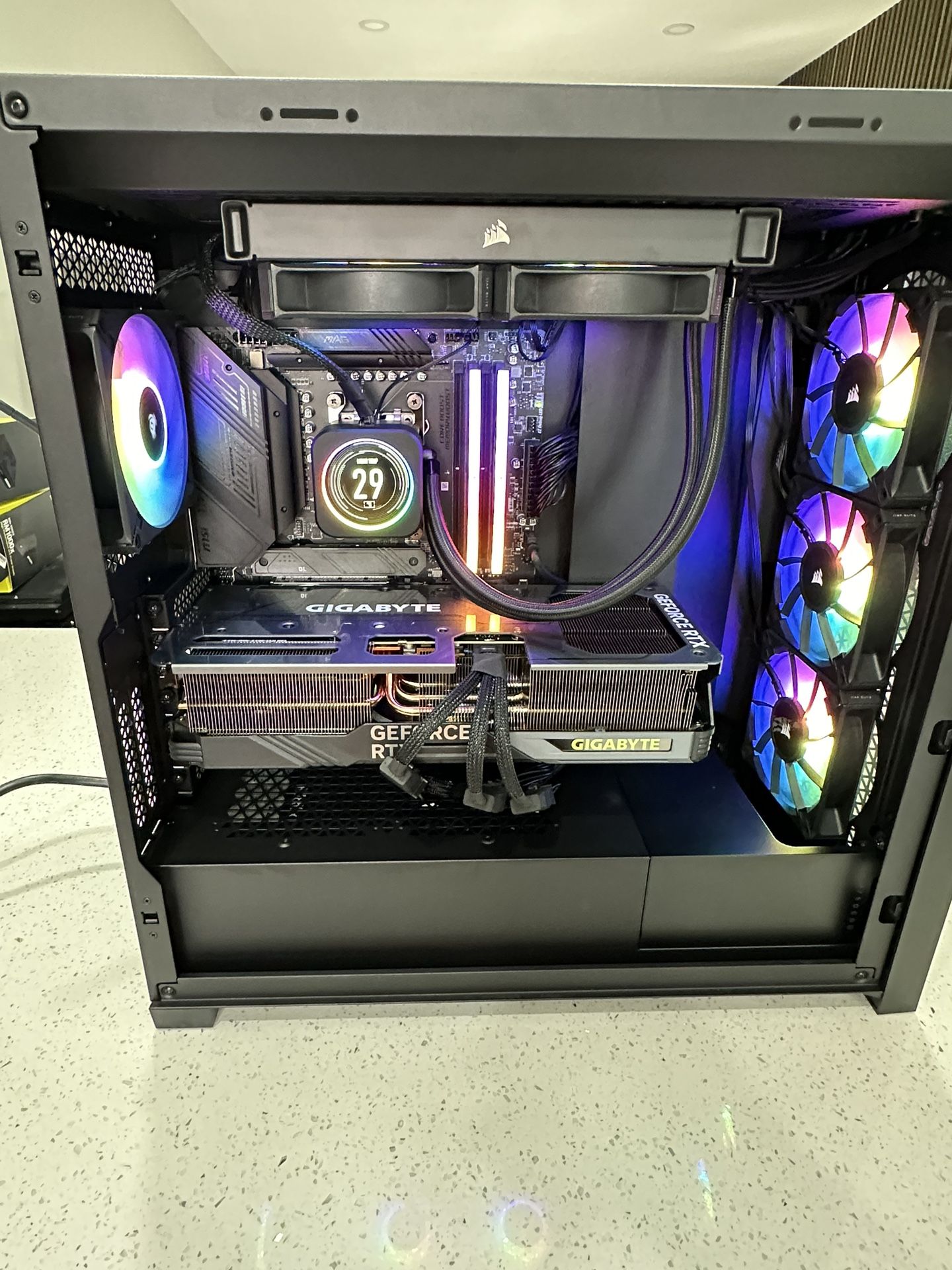 Just built it today ready to sell here are the specs CASE: CORSAIR 5000D AIRFLOW CPU: AMD RYZEN 9 7900X GPU: GIGABYTE 4080 SUPER MOTHERBOARD: MAG B650 TOMAHAWK WIFI RAM: CORSAIR DDR5 32GB 6000 MHZ PSU: CORSAIR 850W 80 PLUS SSD: SAMSUNG 990 1 TB COOLING SYSTEM: CORSAIR H100I LCD AIO