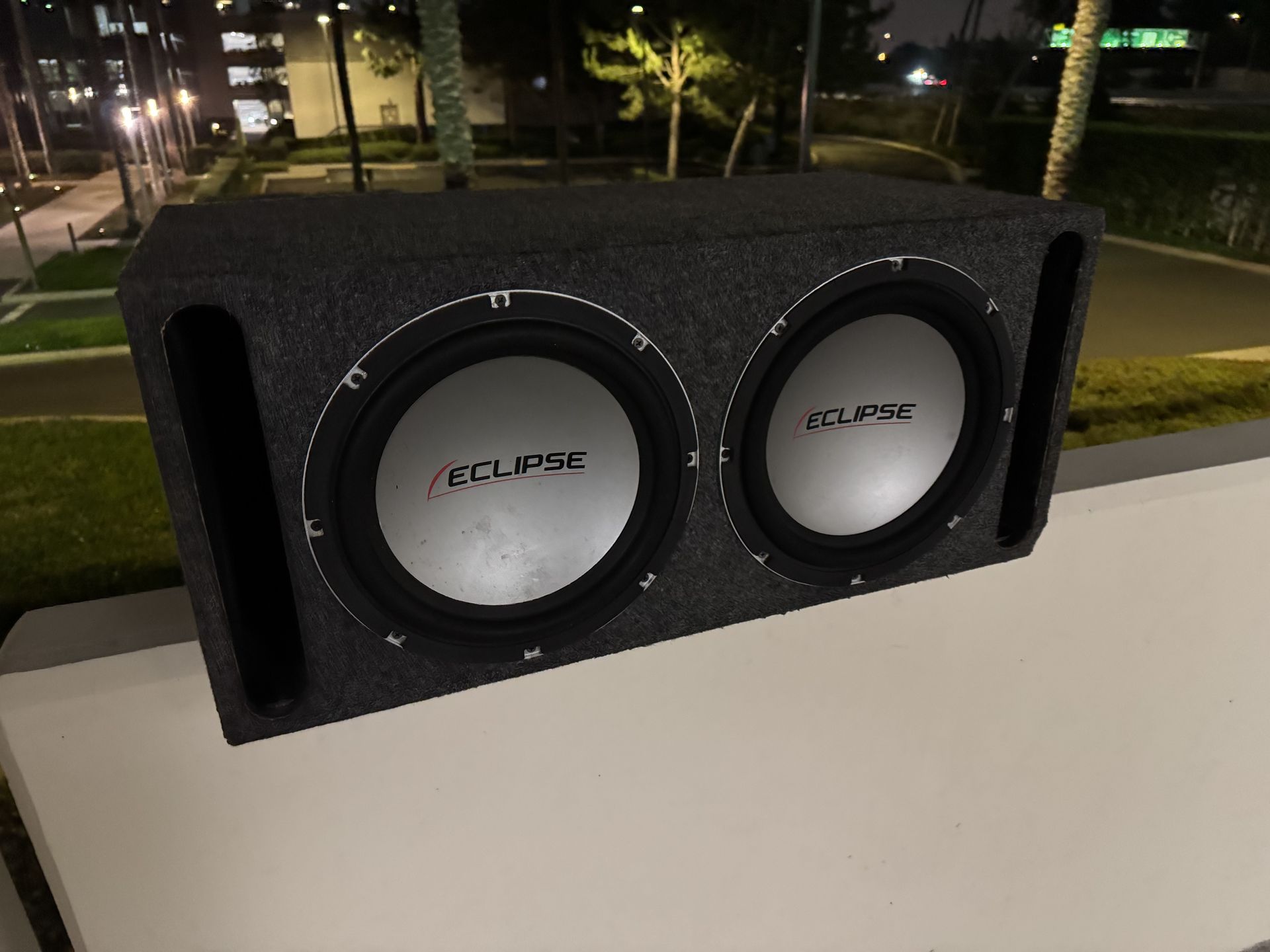 2 12 inch Eclipse Subwoofers With ported enclosure box Hits hard asf!!!loud bass Asking $160