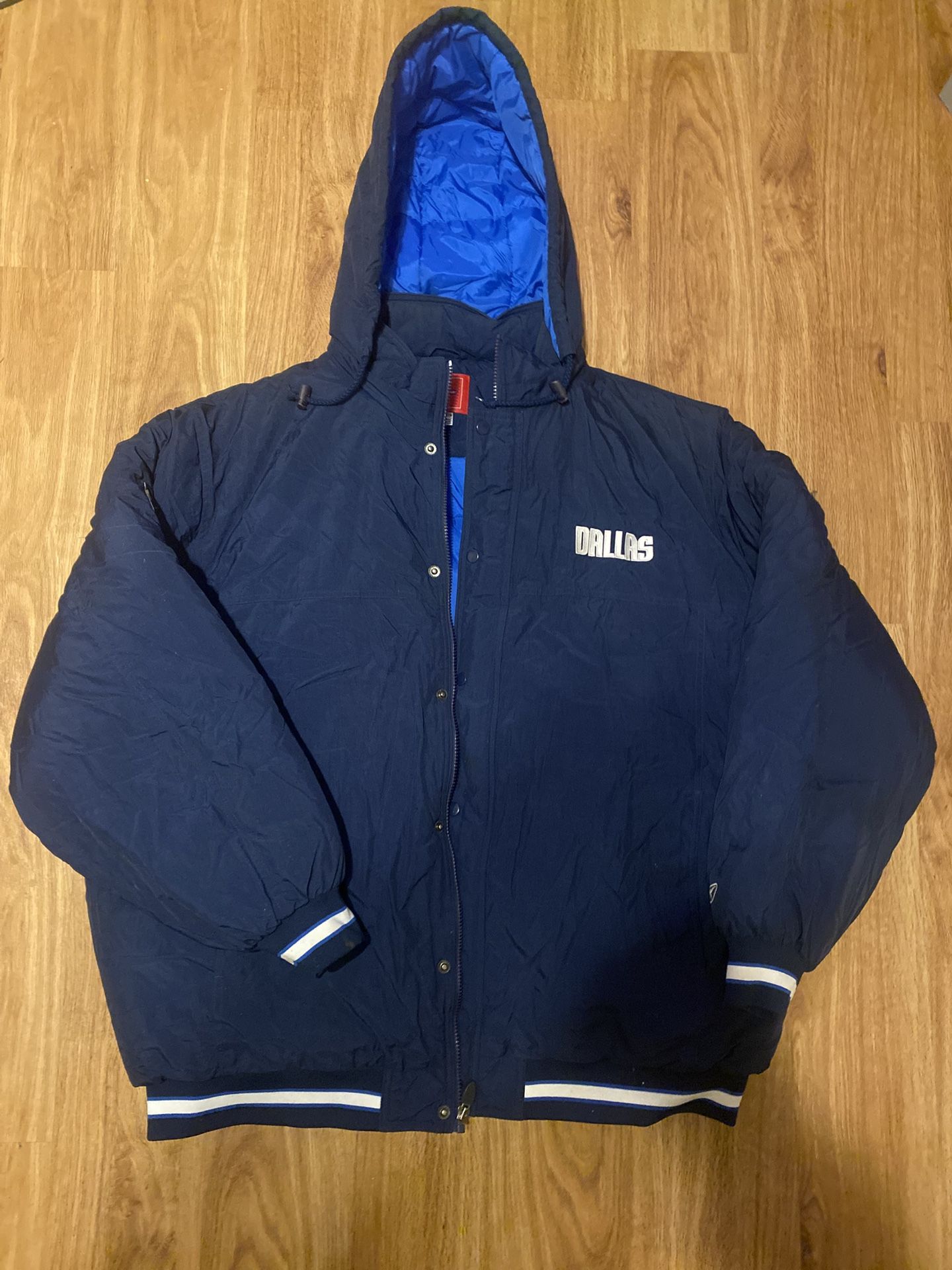 Vintage Mens Reebok NBA Dallas Mavericks Puffer Jacket 2XL Detachable Hood XXL