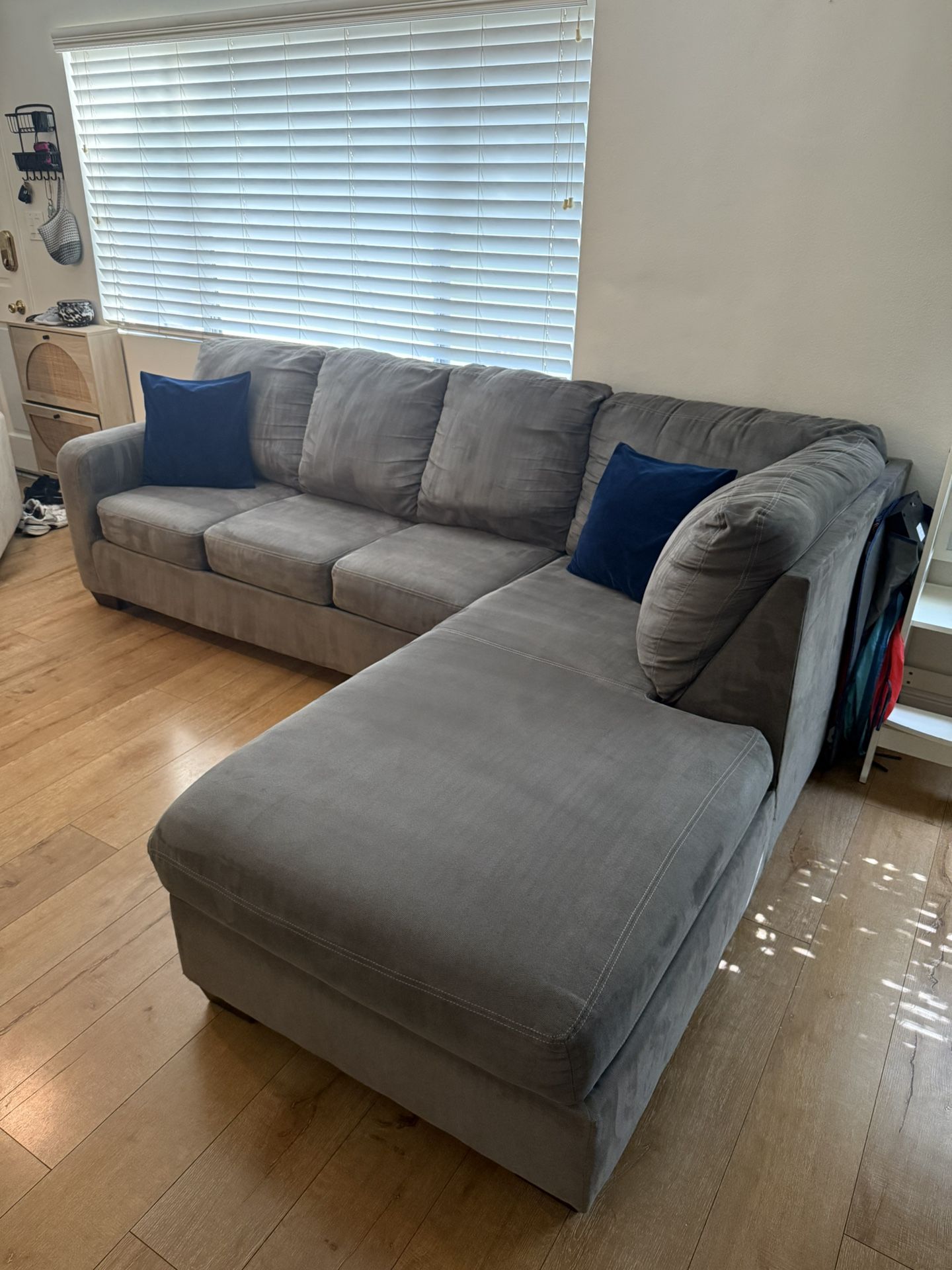L-shaped sectional couch in good condition. Cushion covers are machine washable.