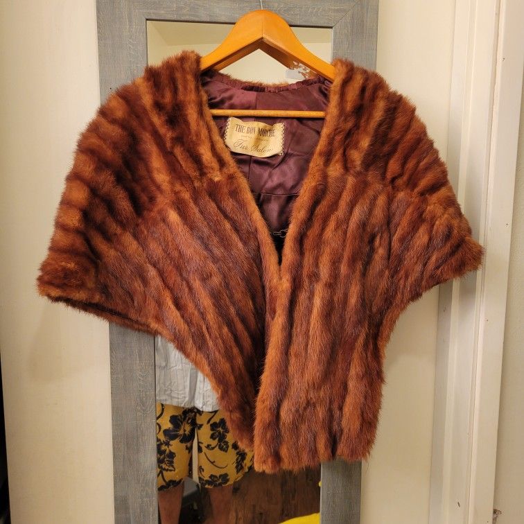 Woman silk lined,cape real Estola vintage de visón Autumn Haze de The Bon Marche Fur Salon "EL SALÓN DE PIEL BON MARCHE" THE BON MARCHE LEATHER SALON original and unique piece Ask $ 200