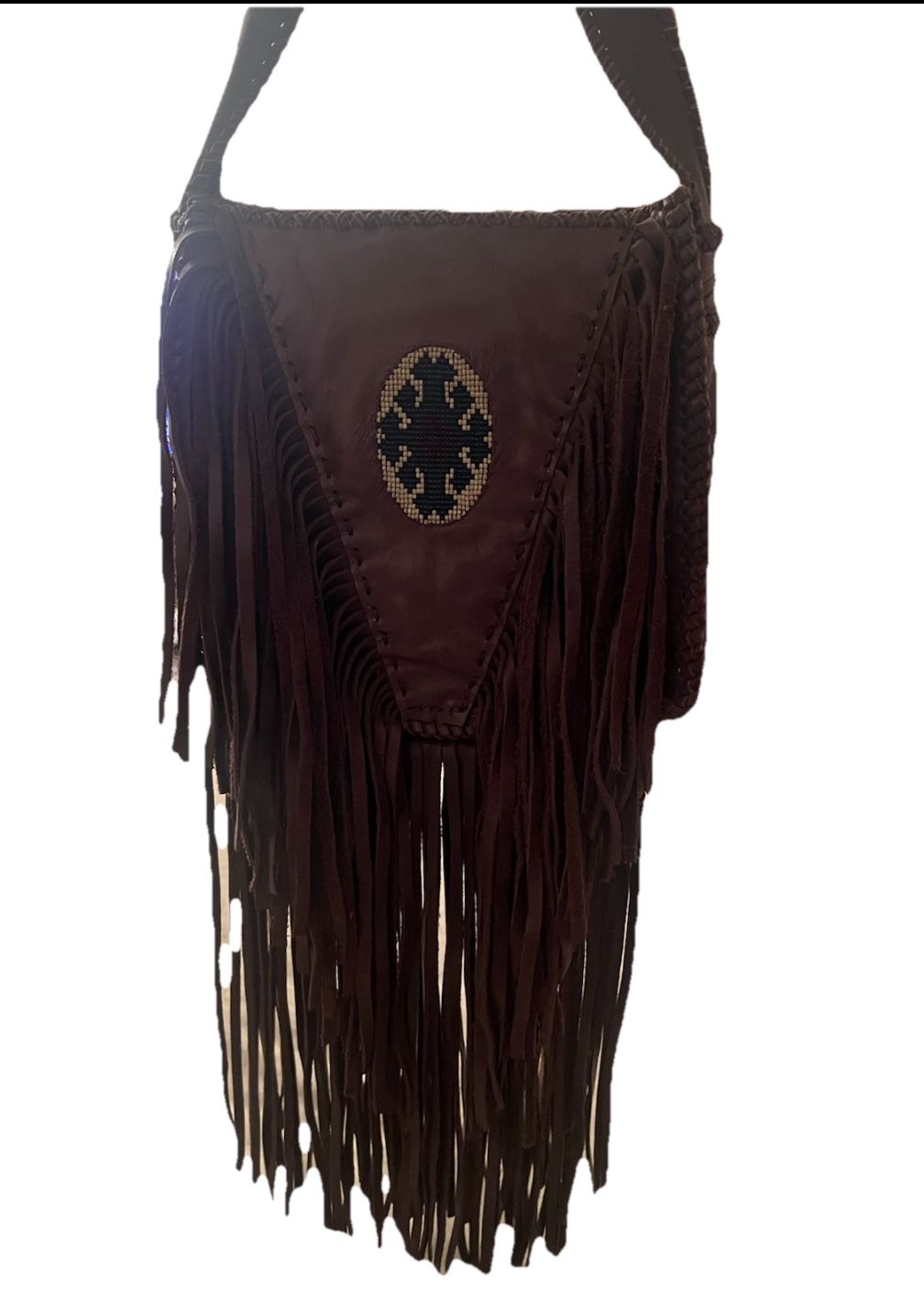 This Love Heals brown leather suede Bohemian style fringe purse is a unique and stylish accessory for women. The medium-sized purse has a snap closure and a crossbody strap handle in black leather. With a leather lining and exterior material, this purse features fringe accents and brass hardware. The brown exterior color and hippie, bohemian theme make it a perfect choice for travel or casual occasions, embodying a blend of hipster, western, and designer styles. Handmade with attention to detail, this purse is a perfect blend of fashion-forward design and quality craftsmanship.