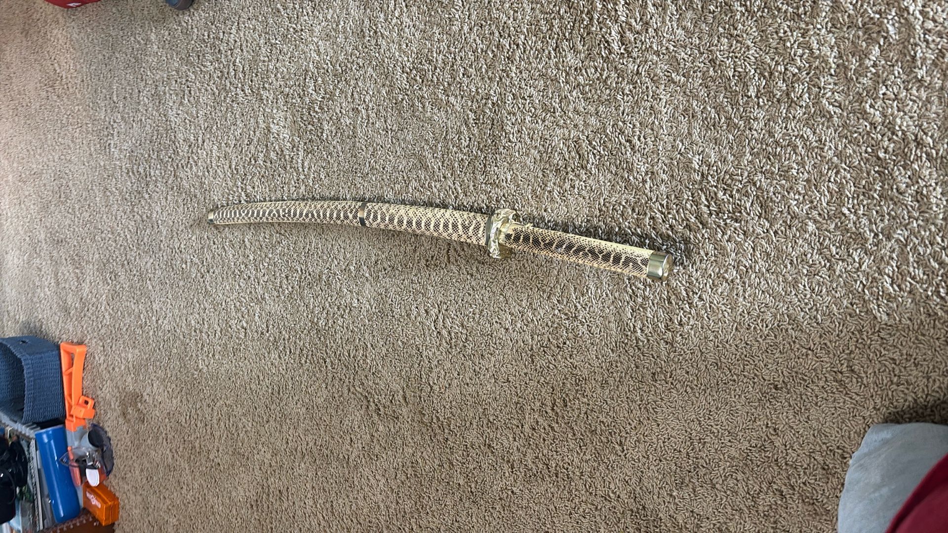 real sword, very dull the tip is sharp snake skin it’s kinda ripping off tho I don’t know the price so negotiate