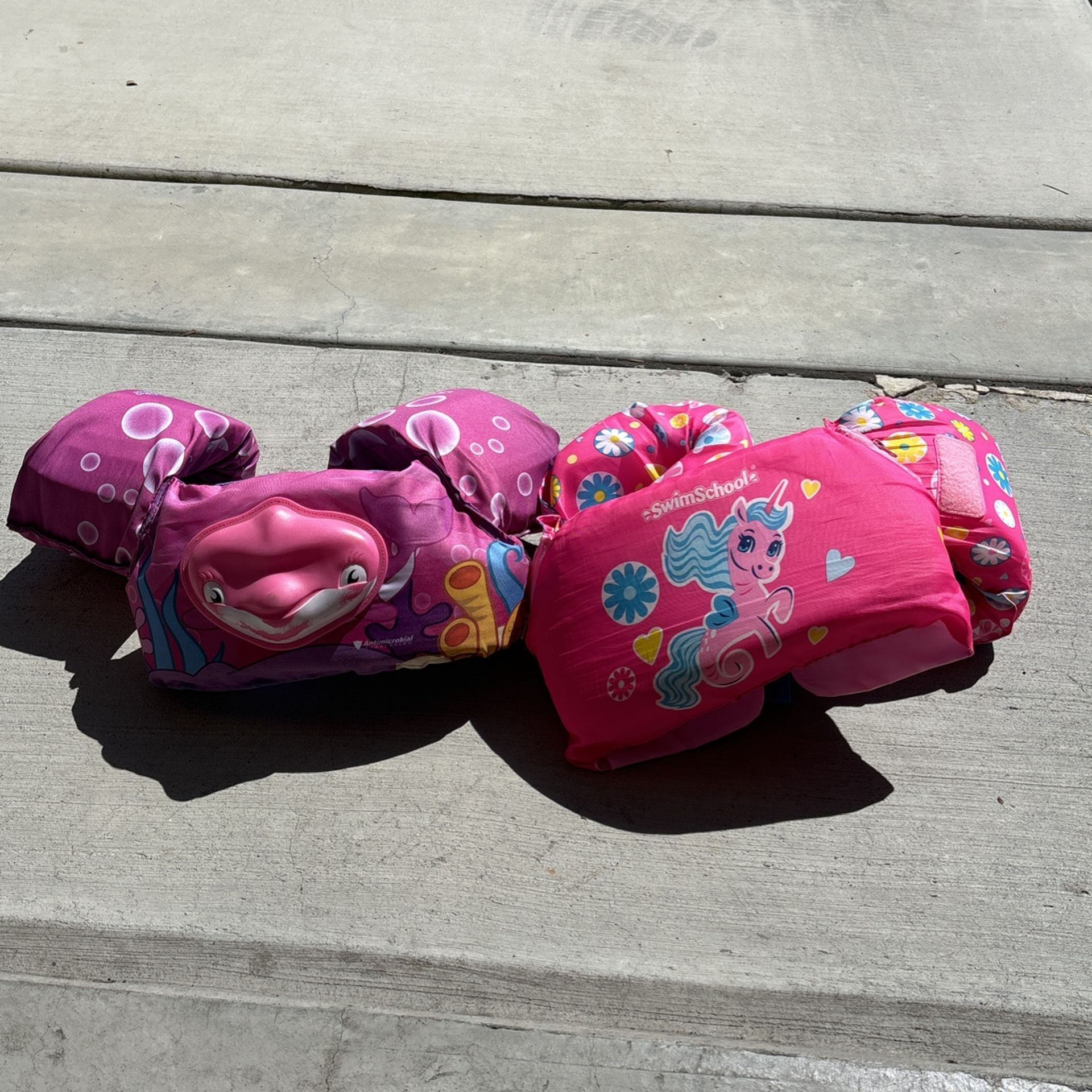 2 kids floaties Good condition 1 is puddle jumper brand 1 is swim school brand 30-50lbs (50 lb max) $8 each