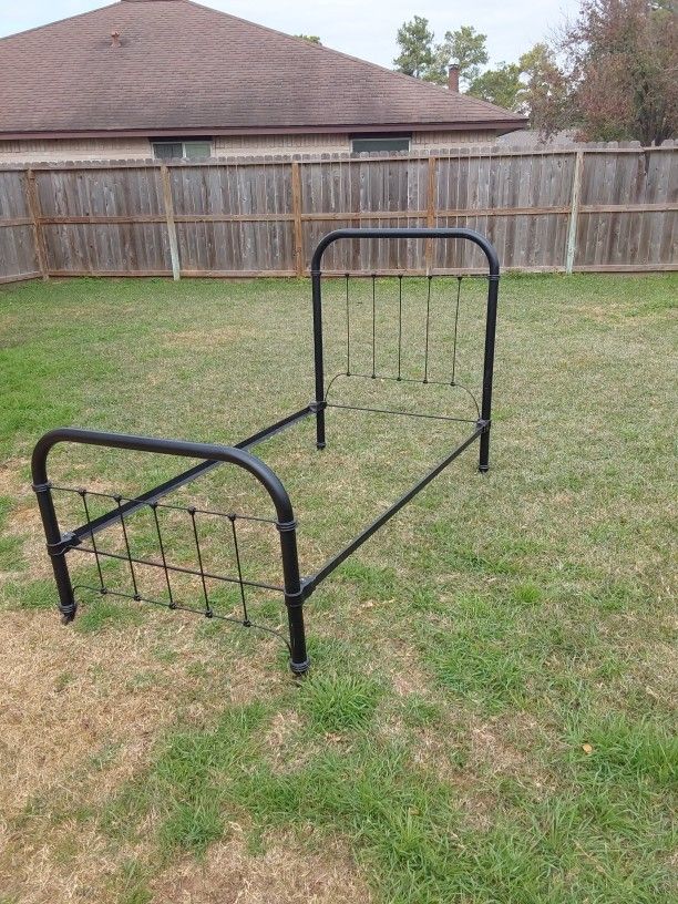 Antique bed frame twin size brand new mattress comes with it. This bed frame has to be at least a 100 years old.