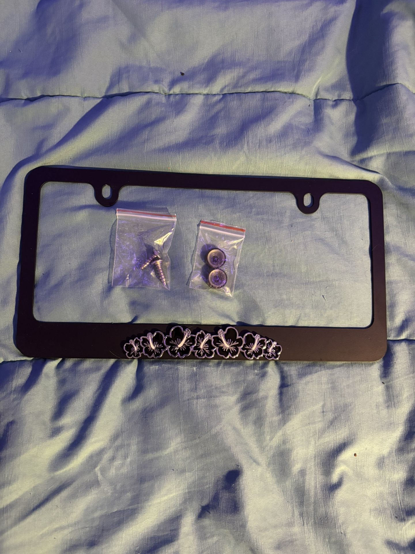 Brand new metal license plate cover with hibiscus flowers Any questions let me know!