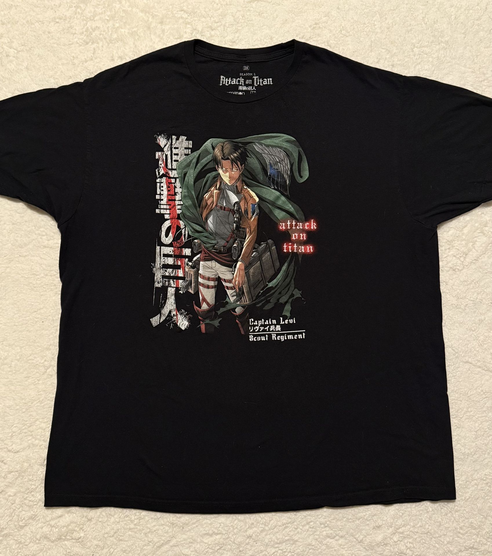 Attack On Titan Funimation Kodansha Ripple Junction Captain Levi Black T-Shirt Men's Size XXL -Season 3 -100% Cotton -Measurements and Condition are in photos -Feel free to ask questions!!!