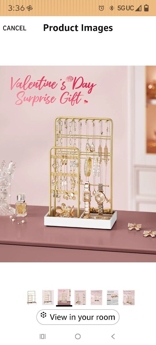 SONGMICS Jewelry Holder, Jewelry Organizer, Jewelry Display Stand with Metal Frame, Velvet Tray, Necklace Earring Bracelet Holder, for Studs, Rings, G