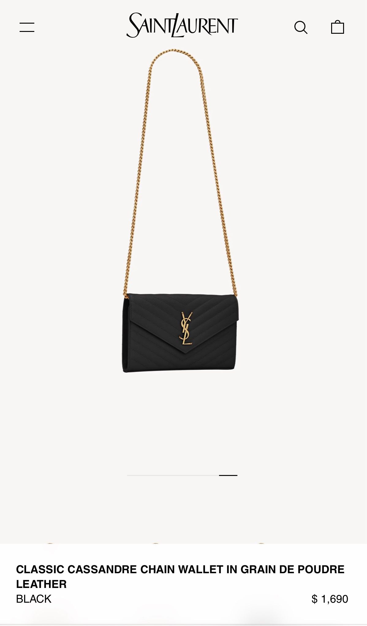 Authentic YSL CLASSIC CASSANDRE CHAIN WALLET IN GRAIN DE POUDRE LEATHER