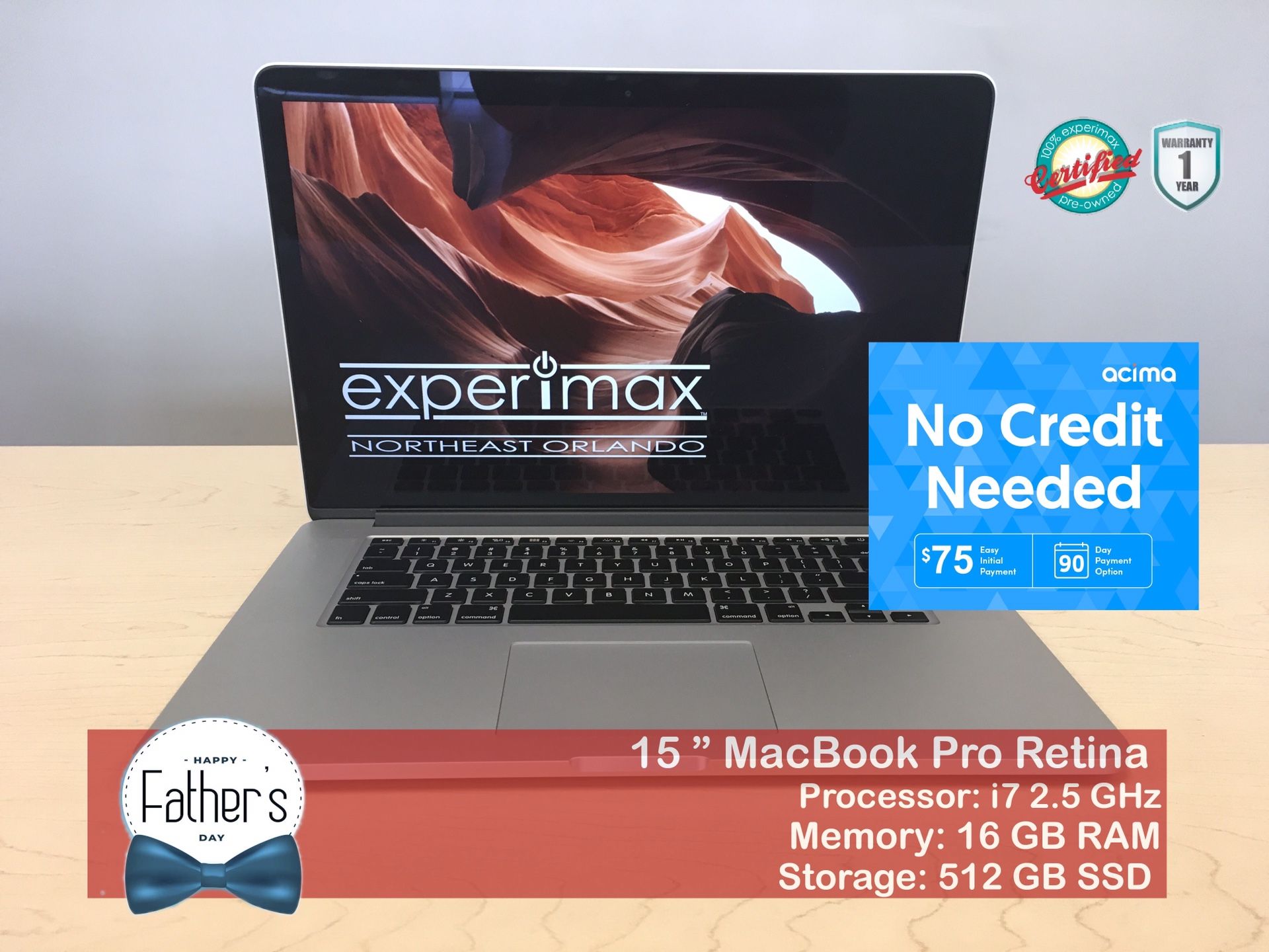 2.5 GHz i7, 16 GB ram, 512 GB SSD storage. Includes charger. 1 YEAR WARRANTY. Our price does not include tax. ***NO CREDIT NEEDED FINANCING AVAILABLE *** ***90 DAY PAYMENT OPTION AVAILABLE *** Experimax Northeast Orlando BUY *SELL *TRADE* REPAIR * Apple Products Experience Mac computers in a whole new way. We have DATA RECOVERY SERVICE and LIQUID CLEANING SERVICE. Come and visit us. We have many options for you!!! 1700 N Semoran Blvd, Suite 130, Orlando, Florida, 32807. We speak English, Spanish and Portuguese. Incluye cargador. 1 AÑO DE GARANTÍA. Nuestro precio no incluye impuesto. ***FINANCIAMIENTO DISPONIBLE “NO NECESITA CRÉDITO”. *** ***CON OPCION DE PAGO A 90 DÍAS SIN INTERESES.*** Experimax Northeast Orlando COMPRA* VENDE *TRADE * REPARA * Productos de Apple Experimente las computadoras Mac de una manera completamente nueva. Tenemos servicio de recuperación de datos y daños de líquidos.. Ven y visítanos. Tenemos muchas opciones para ti !!! 1700 N Semoran Blvd, suite 130, Orlando, Florida, 32807. Hablamos inglés, español,portugués.