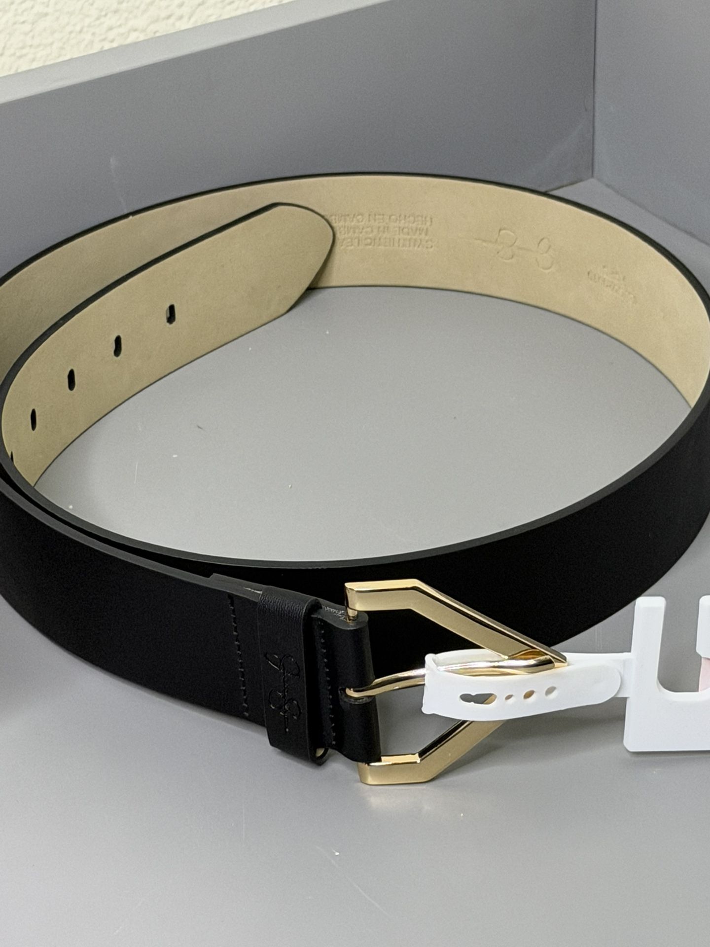 Cinturón de la marca Jessica Simpson en color negro con hebilla metálica dorada. Talla L (marcada en la etiqueta). Nuevo, con sujetador de tienda todavía puesto. Diseño elegante y versátil — perfecto para jeans, pantalones de vestir o outfits casuales. Excelente calidad y acabado. Listo para entregar o enviar.