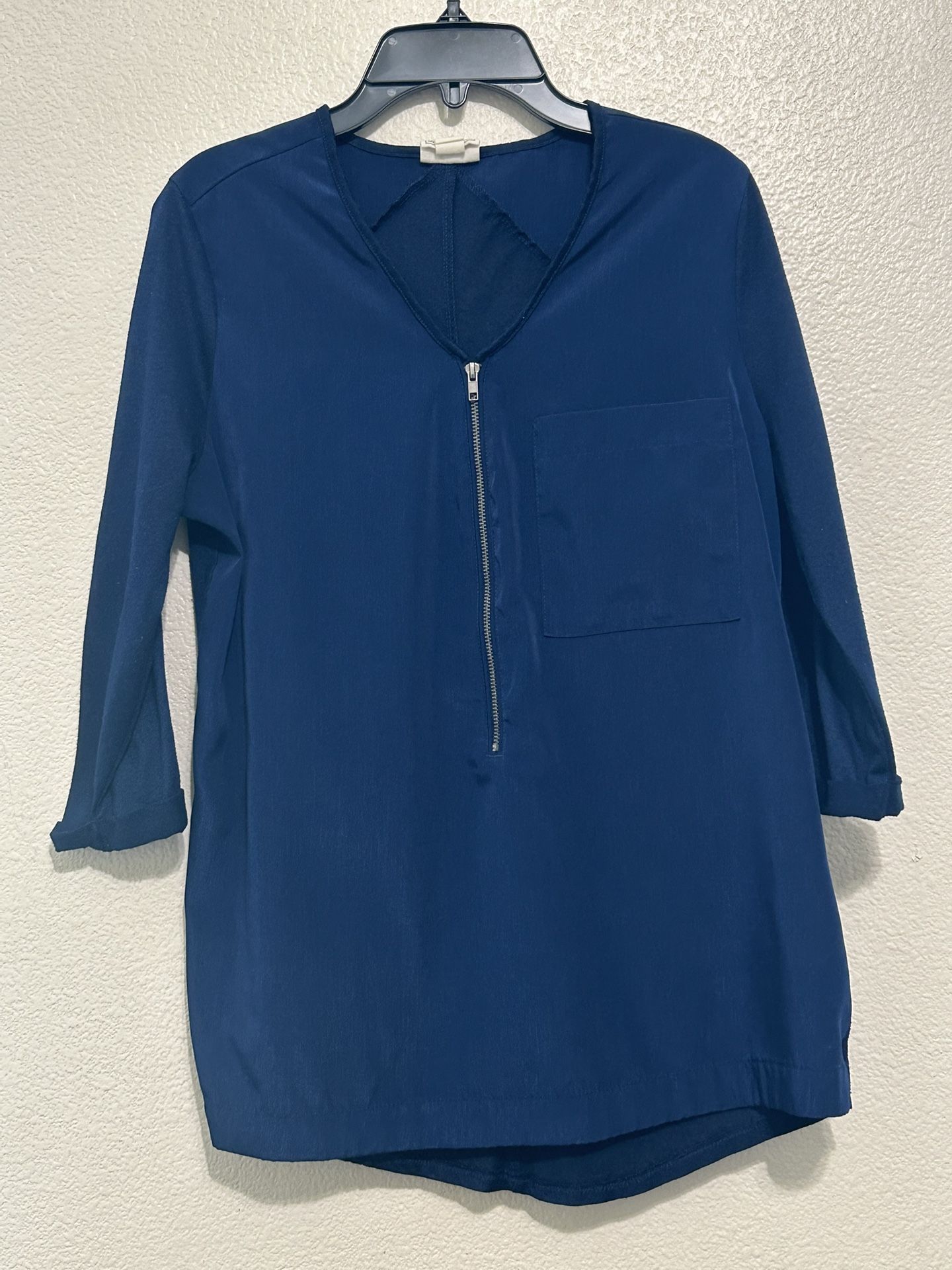 Converse Y2K Blue Half Zipper Mixed Media Blouse V-Neck Size M