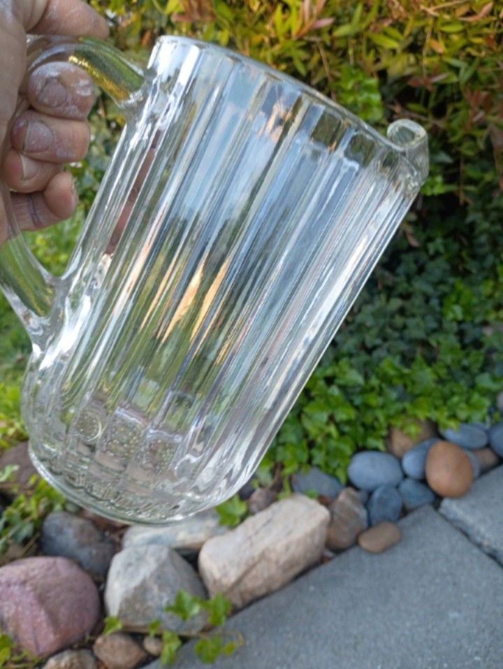 Vintage Pitcher Thick Glass Beaded Bottom Dripless Rim