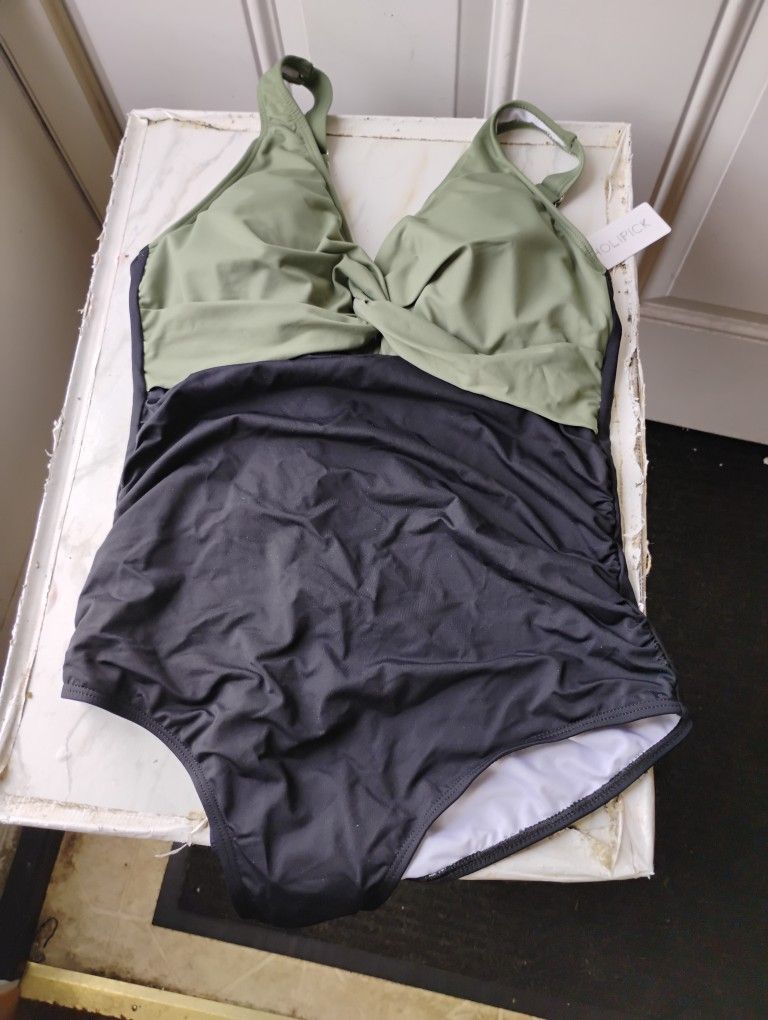 Experience the perfect blend of style and comfort with this elegant one-piece swimsuit. Featuring a striking black and green color block design, it offers a classic silhouette with a modern twist. The fabric's subtle sheen adds a touch of sophistication, making it ideal for both poolside lounging and active swimming.