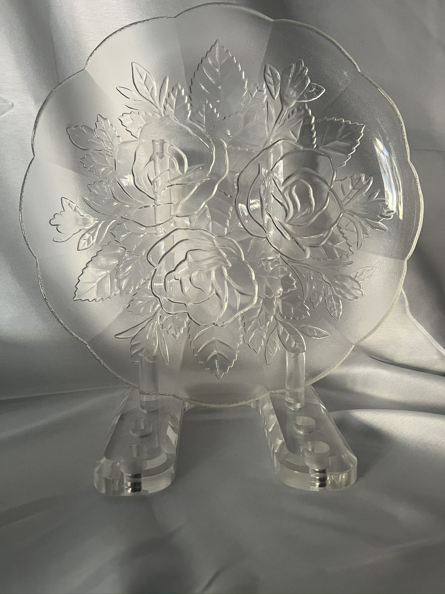 10 piece Pasari Glass Crystal “Livia” Rose Embossed dinner plate 10”