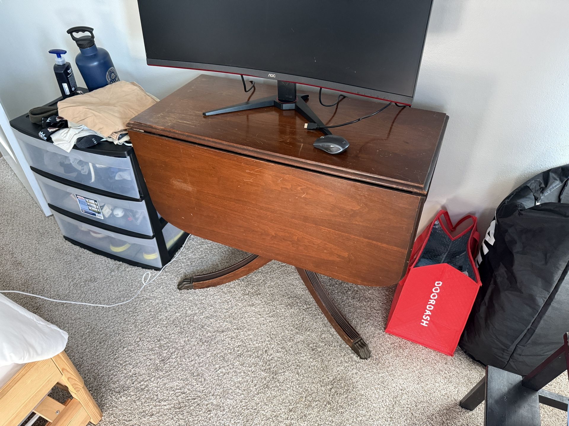 Good condition Measurements: 50x36 inches unfolded table surface 18x36 inches folded 28 inches tall