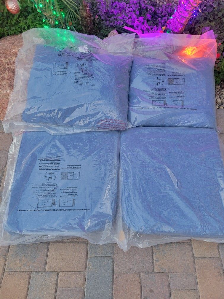 Hampton Bay Primrose 4-Piece Deep Seating Cushion Set with CushionGuard Lake Blue Cushions. $80 Firm The two seat cushions have 1 rounded corner(see pic#2). Bottom Seat Cushions are 25"X24", Seat Back Cushions are 25"X22"