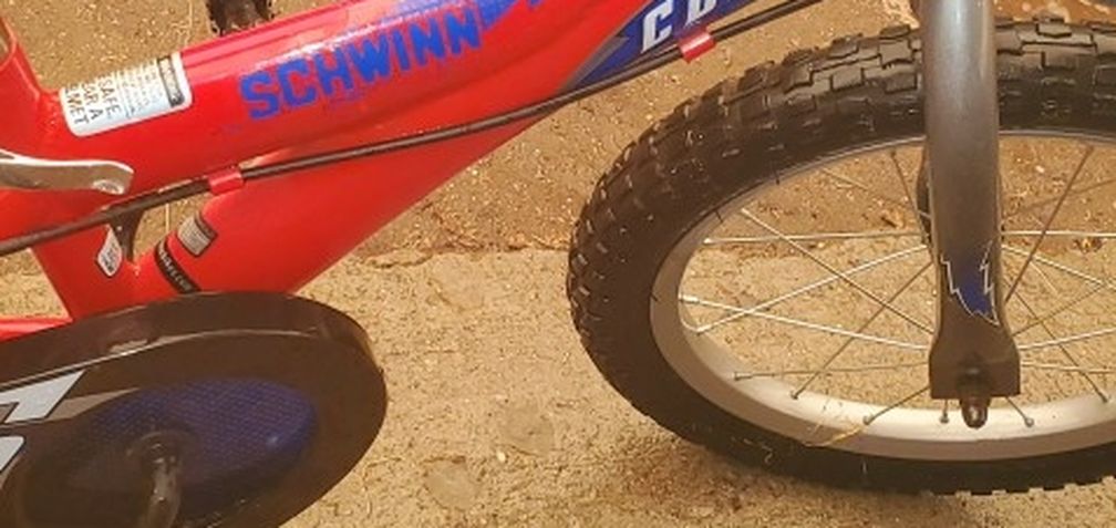 Size 8inch. Tiene llantitas u con Casco incluido. Una llanta esta baja no se si ocupa aire, esta muy chica para mi nino precio firme $13