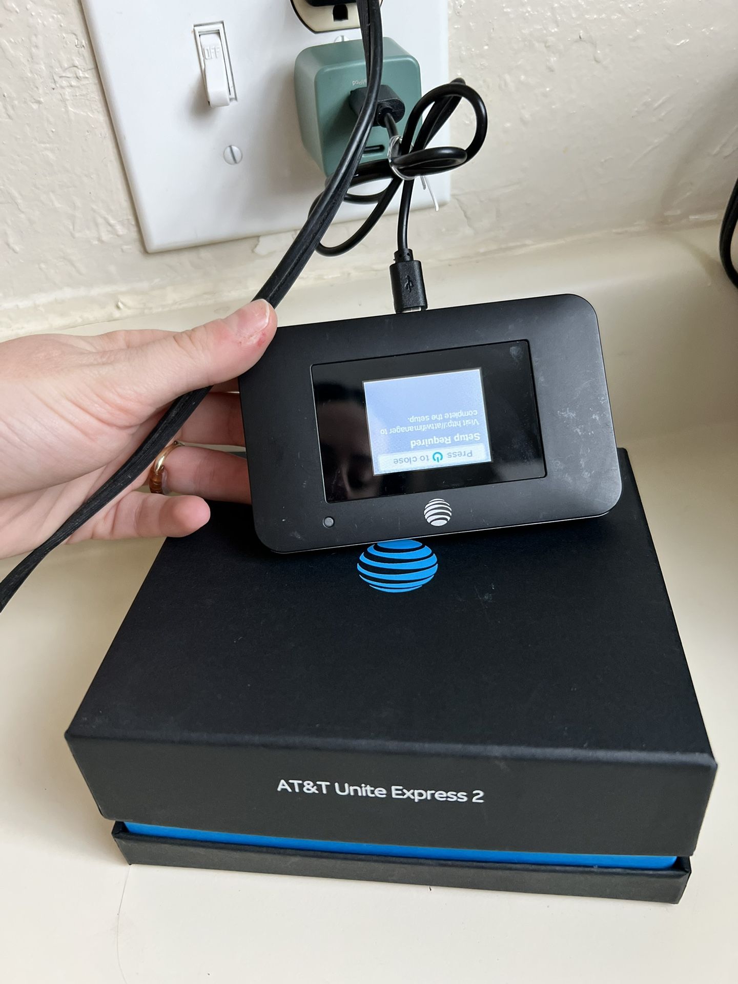 Portable AT&T Unite Express 2 mobile hotspot. Device is black and has original box. Has lithium ion battery. Includes charging cable. Needs new SIM / prepaid internet plan. Not really sure how it works. I got this for school and the plan ran out. Used maybe once or twice.