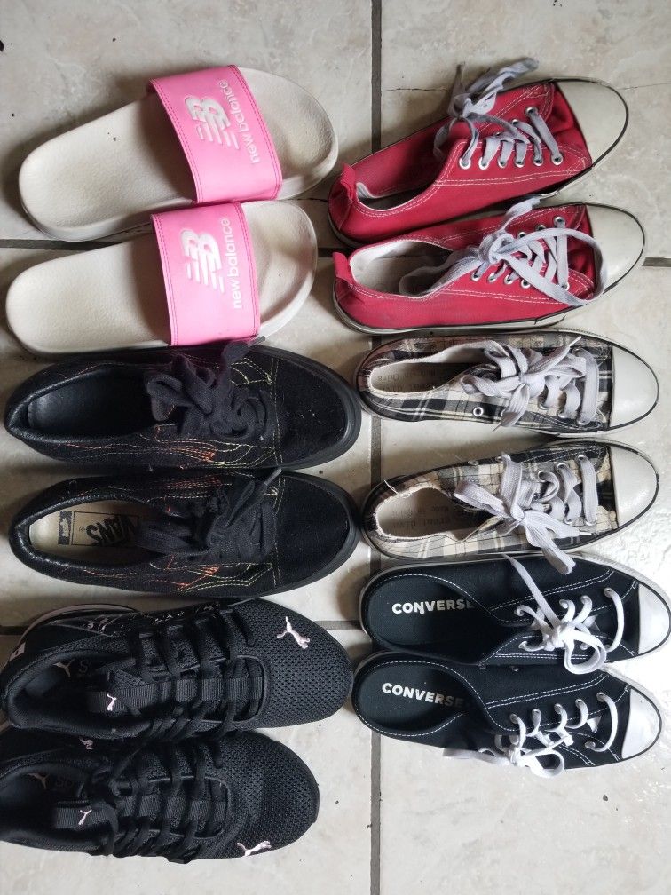 Sizes Vary from size 6-6.5 Prices Vary for shoes from 15$-50$.. Two pairs are New. Pumas and Van's.