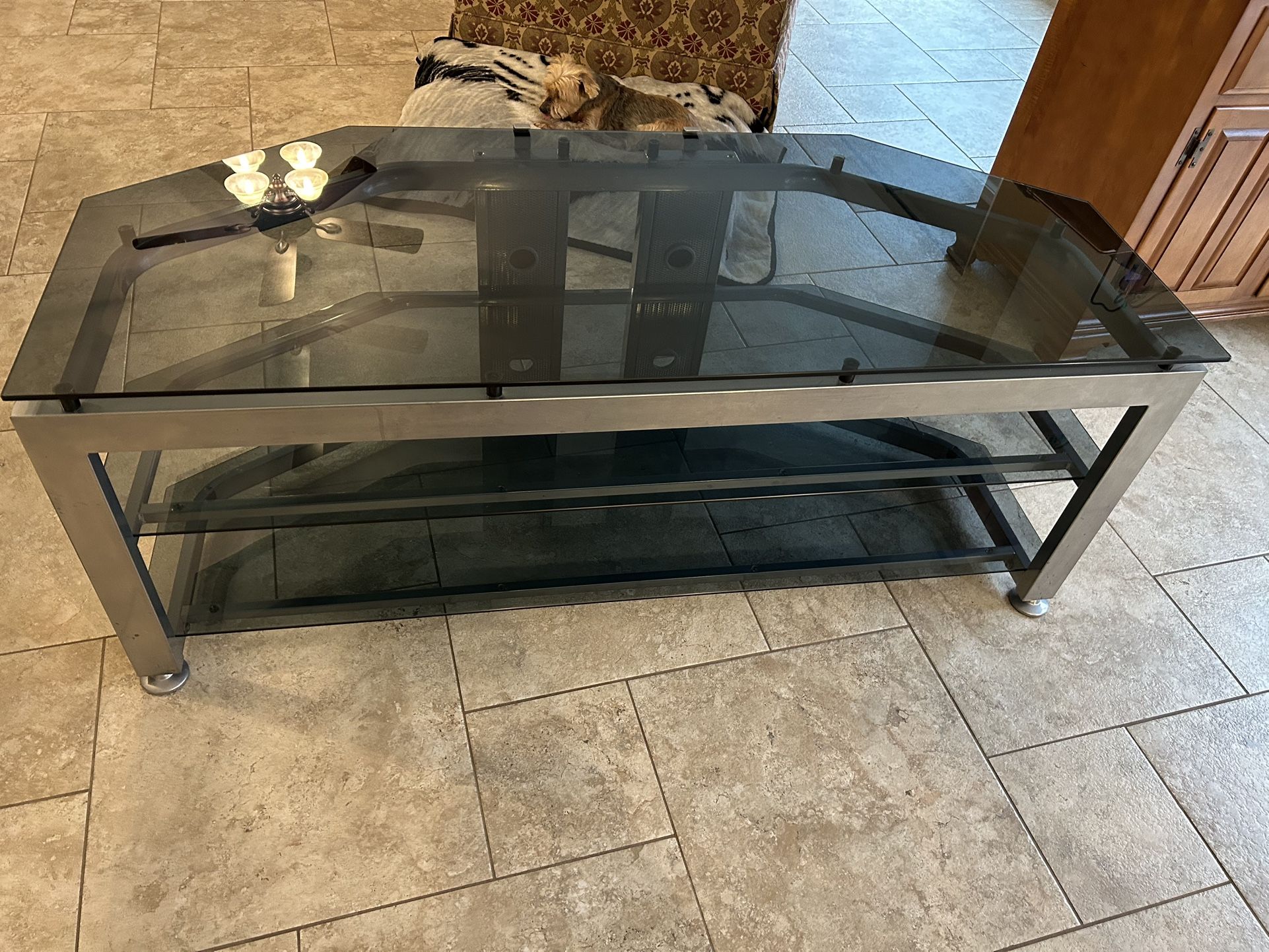 Glass and metal Tv stand with 3 layers . Very good condition. Pick up in Abingdon Maryland 21009