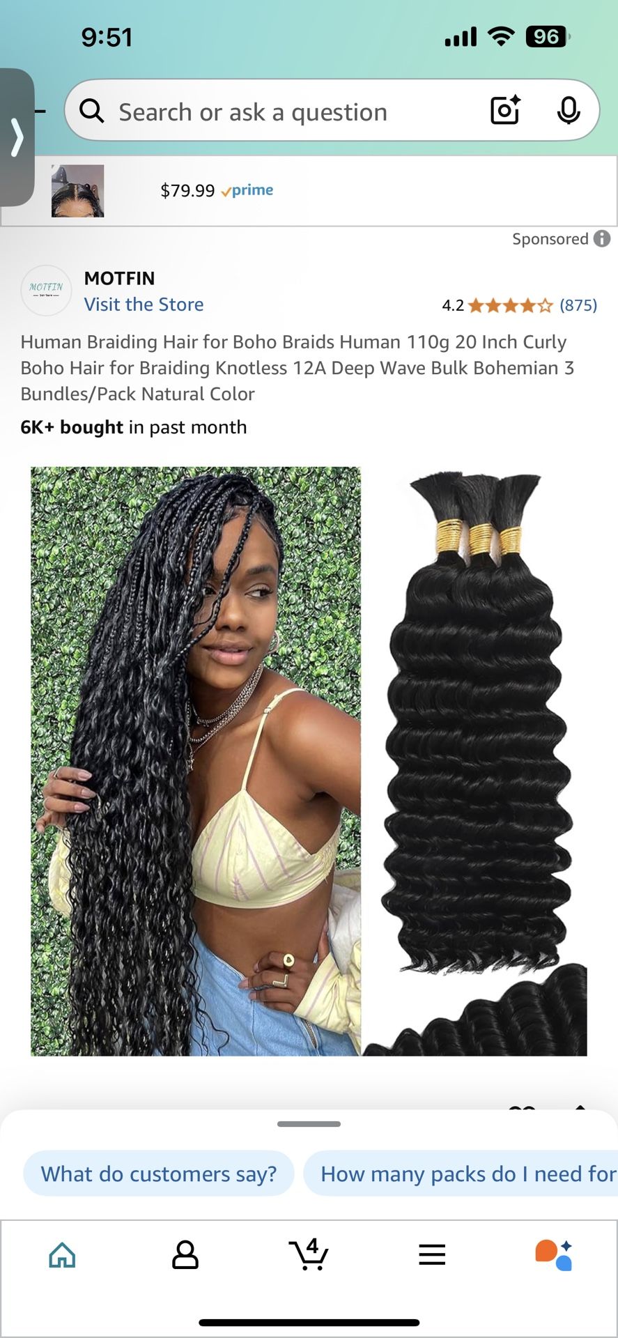 Human Braiding Hair for Boho Braids Human 110g 20 Inch Curly Boho Hair for Braiding Knotless 12A Deep Wave Bulk Bohemian 3 Bundles/Pack Natural Color