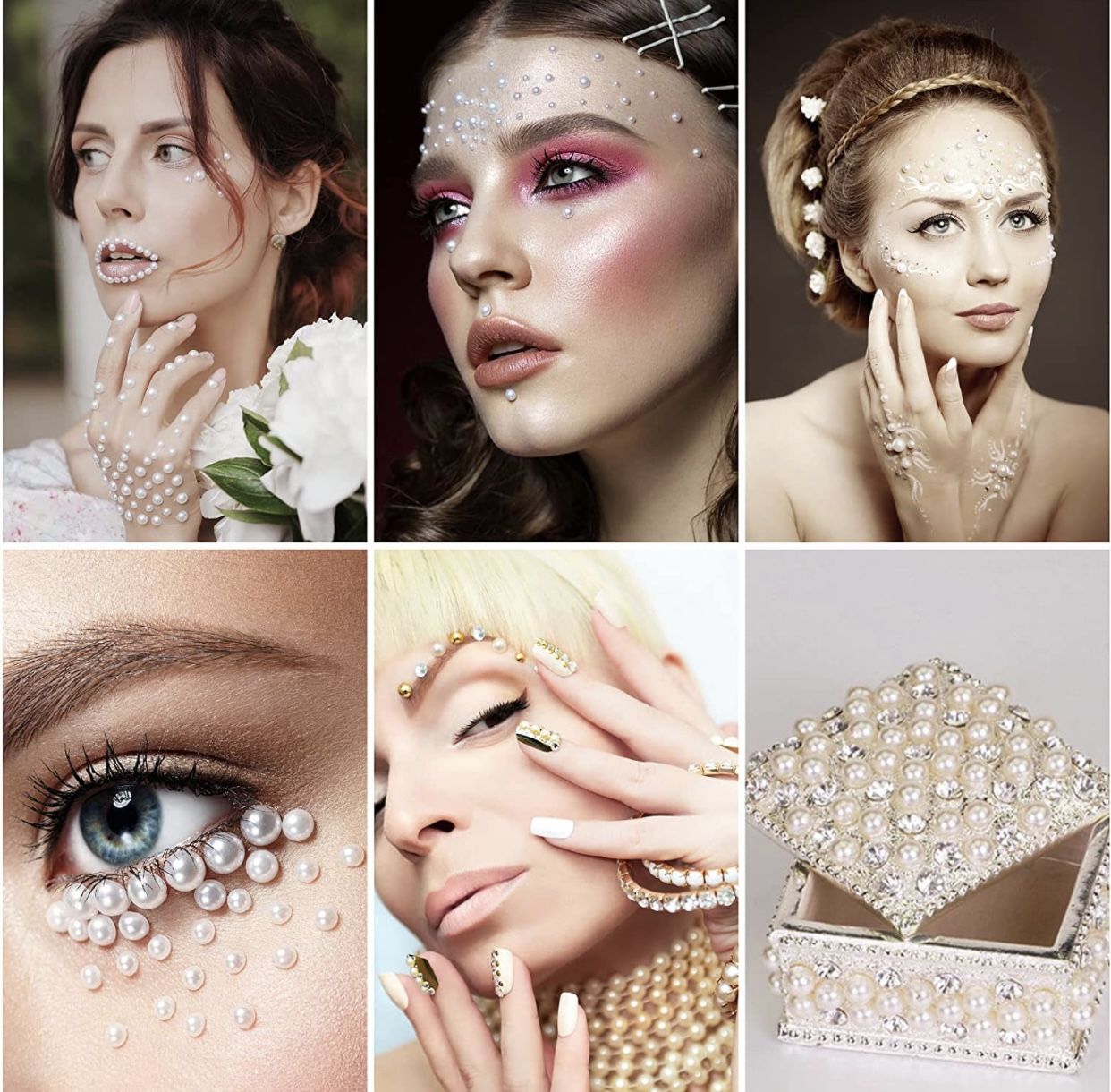 2206Pcs Self Adhesive Pearl Stickers, Hair Pearl Gems Stickers 7size3mm/4mm/5mm/6mm/7mm/8mm/10mm, used for facial makeup, hair, nails, body, mobile ph