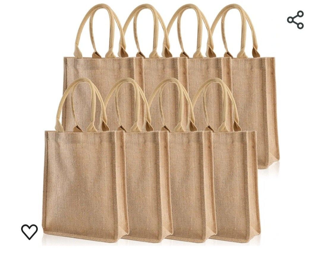 DEAYOU 8 Pack Jute Tote Bags with Handles, Jute Grocery Totes for Bridesmaid, DIY, Shopping, Pool, Wedding, 9.8''x11.8''x3.9''