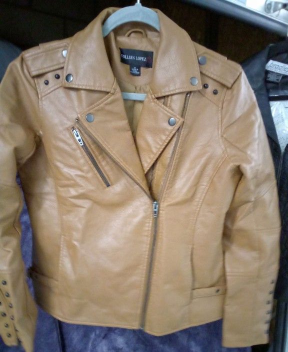 Colleen Lopez 100% Polyurethane faux leather brown jacket p