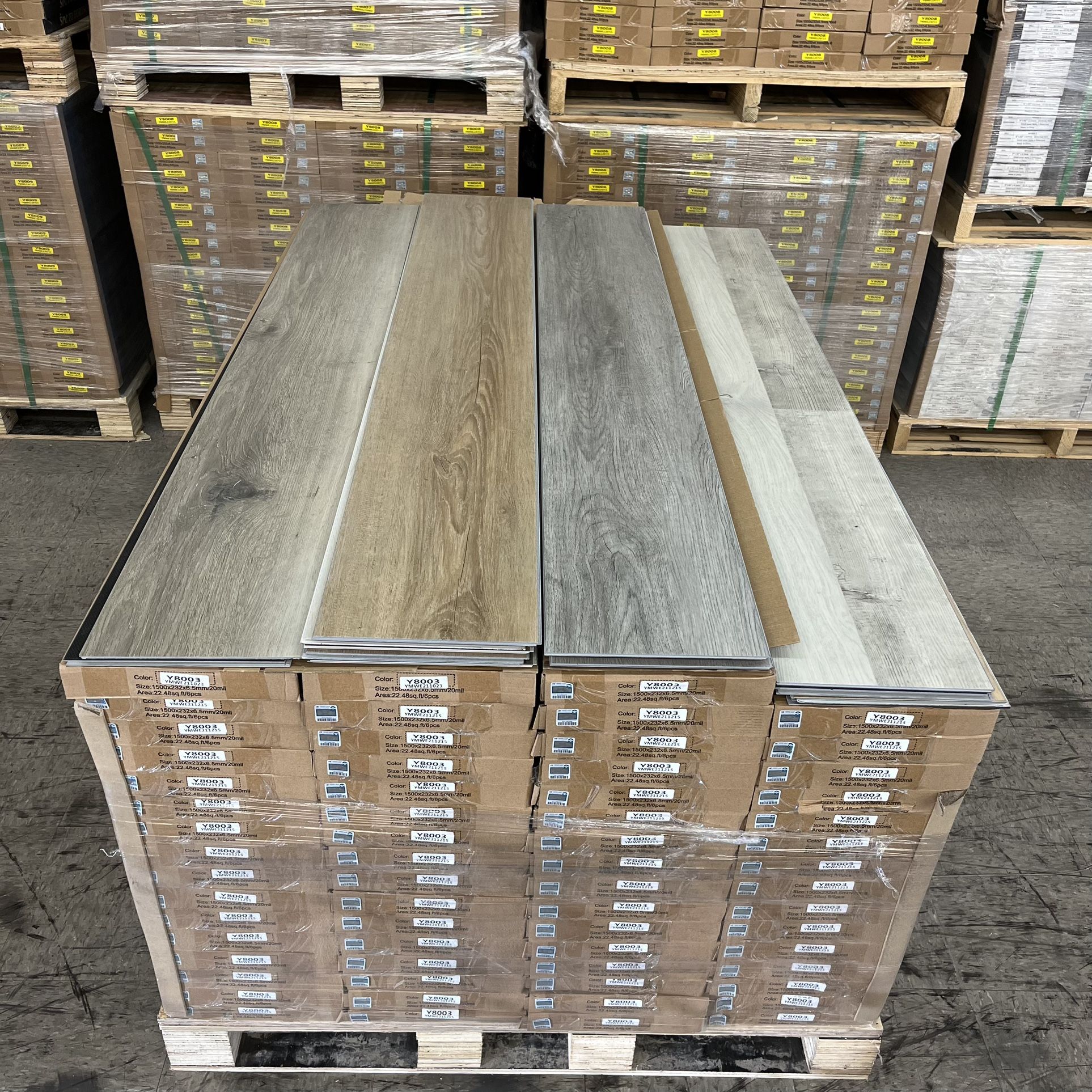 Start Up $0.89/sq ft 5.5mm - 10mm Luxury Vinyl Plank Flooring 100% Waterproof The Flooring With Click Locked No Glue Is Needed -----WHOLESALE PRICE----- ⭐5.5mm: Weight:50LB/Box Thickness:4mm+1.5mm Sq ft/Box:30.17Sq ft Pcs/Box: 8Pcs/Box Price/Sq ft: Start Up $0.89 Size:9''*x60''x5.5mm 12mil/20mil Wear Layer,1.5mm Pad ---------------------------- ⭐ ⭐ ⭐ 6mm: Weight:45LB/Box Thickness:4mm+2mm Sq ft/Box:24.02Sq ft Pcs/Box: 8Pcs/Box Price/Sq ft: Start Up $1.09 Size:9''*x48''x6mm 22mil Wear Layer,1.5mm Pad ---------------------------- ⭐ ⭐ ⭐ 6.5mm: Weight:58LB/Box Thickness:5mm+1.5mm Sq ft/Box:22.48Sq ft Pcs/Box: 6Pcs/Box Price/Sq ft: Start Up $1.19 Size:9''*x60''x6.5mm 20mil Wear Layer,1.5mm Pad ---------------------------- ⭐ ⭐ ⭐ 7mm: Weight:58LB/Box Thickness:5mm+2mm Sq ft/Box:21.13Sq ft Pcs/Box: 6Pcs/Box Price/Sq ft: Start Up $1.39 Size:9''*x48''x7mm 20mil Wear Layer,1.5mm Pad ---------------------------- ⭐8mm: Weight:65LB/Box Thickness:6.5mm+1.5mm Sq ft/Box:22.72Sq ft Pcs/Box: 6Pcs/Box Price/Sq ft: Start Up $1.29 Size:9''*x60''x8mm 20-28mil Wear Layer,1.5mm Pad ----------------------------- ⭐9mm QPC: Weight:68LB/Box Thickness:6.5mm+1.5mm Sq ft/Box:22.72Sq ft Pcs/Box: 6Pcs/Box Price/Sq ft: Start Up $1.99 Size:9''*x60''x9mm Super Scratch Resistant ----------------------------- ⭐10mm: Weight:50LB/Box Thickness: 8mm+2mm Sq ft/Box: 15 Sq ft 4Pcs/Box Price/Sq ft: Start Up $2.39 Size:9''*x60''x10mm 30mil Wear Layer, 2mm Pad ----------------------------- Residential and Commercial 20 Mil To 30 Mil Wear layer Underlayment Padding Included 365 FLOORING DEPOT Address: 2628 E South St, Long Beach, CA 90805 Monday - Saturday: 7am to 4pm Sunday: Closed