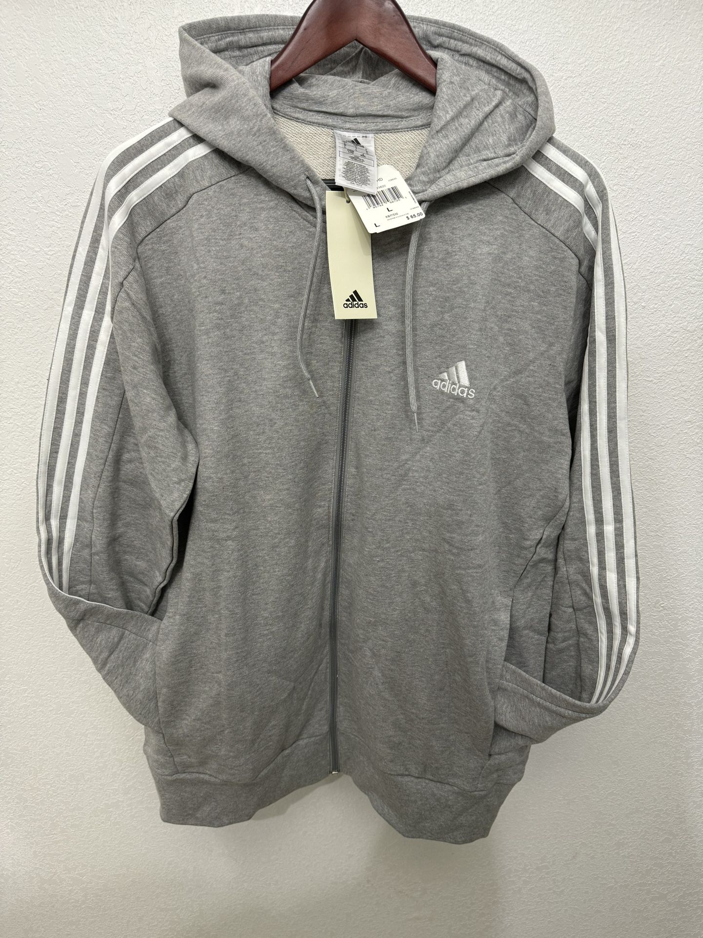 Adidas Three Stripe Grey ZipUp Hoodie Size Large *NWT*