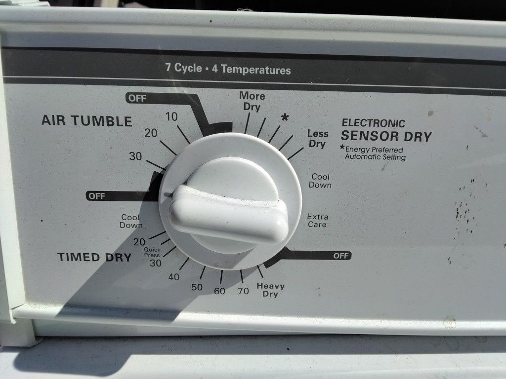 KitchenAid Heavy Duty Super Capacity Plus dryer. Specifically, matching models include the KEYS850JT1 electric front-load dryer. https://offerup.co/faYXKzQFnY?$deeplink_path=/redirect/ The control dial features several drying modes and specialized settings: Primary Drying Modes Electronic Sensor Dry: Uses an internal moisture sensor to determine when clothes are dry. Settings range from "More Dry" to "Less Dry," including an Energy Preferred automatic setting marked with an asterisk. Timed Dry: Allows you to manually set the drying time from 20 to 70 minutes. This section includes a "Heavy Dry" option and a "Quick Press" setting. Air Tumble: Uses room-temperature air without heat for 10 to 30 minutes, ideal for fluffing items or drying heat-sensitive materials. Key Features & Maintenance Cycle End: Most cycles include a "Cool Down" period at the end to help reduce wrinkles. Capacity: This series is typically classified as "Super Capacity Plus" with a 29-inch width.