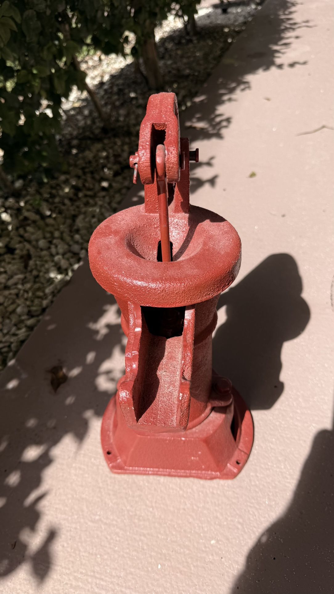 This is a small water pump that was used for in the house in the kitchen back in the pioneer days or nowadays, if you only have a well. It’s about 2ft tall