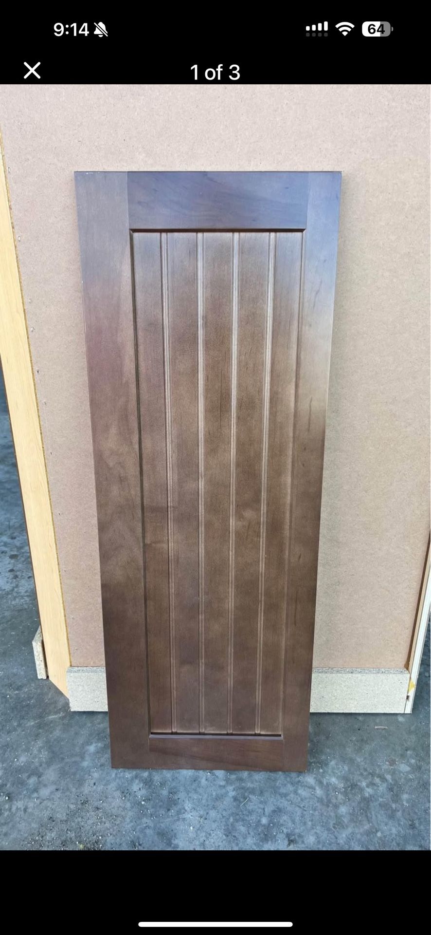 Selling a mix of stained cabinet doors, all full overlay for framed cabinets. These are perfect for cabinet refacing, garage storage, new builds, or replacements. - Condition: Used but in like-new condition - Full overlay style (not inset or partial) - Doors only — no hinges or boxes included - Sold individually or in bulk The doors are $40 each. Base Cabinet Doors: all doors listed below are 23-7/8 “ tall. Widths and quantity listed below: 23-1/2” …. Quantity (6) 20-1/2” …. Quantity (12) 11-5/8 …. Quantity (2) 14-3/4 …. Quantity (4) 16-1/4 …. Quantity (7) 17-3/4 …. Quantity (9) 11-3/4 wide x 29-7/8 tall …. Quantity (8) Below are wall cabinets made for 42 inch tall cabinets with a full overlay. size is listed. Below are the widths. 41-1/2” tall 16-1/4 …. Quantity (5) 11-3/4 …. Quantity (6) 14-5/8 …. Quantity (8) 20-1/2 …. Quantity (2)