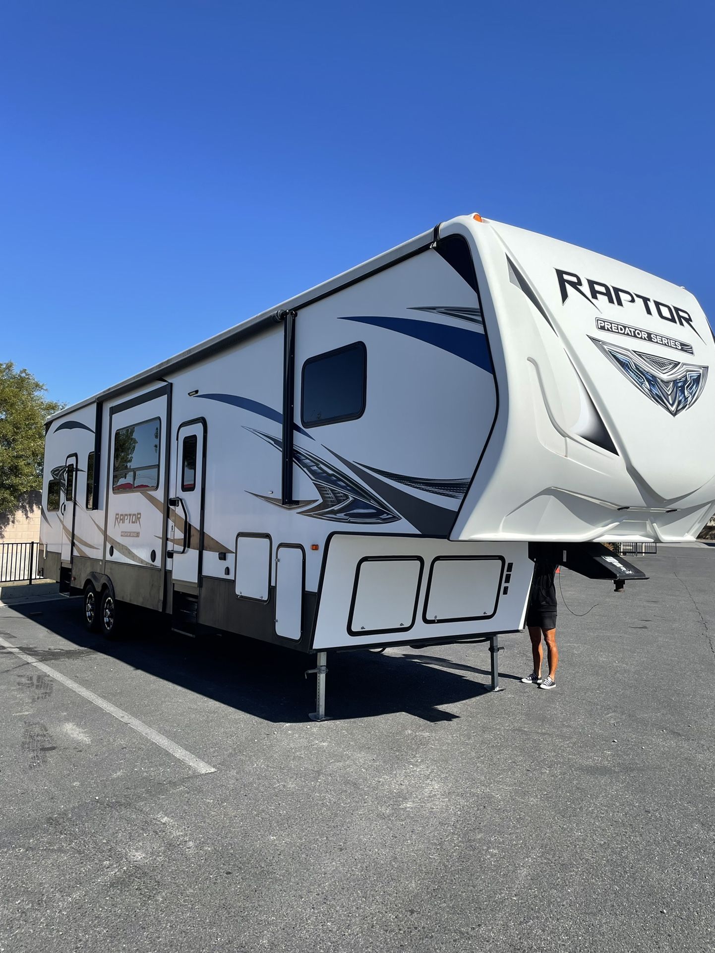 2018, purchased used from Richardsons RV last November. I’ve never taken it out. Two slides 13.6 separated garage and bathroom. Two rear queen electric bunks. Queen in master bedroom. Low hours on Cummins 4500 generator. Added a second ac unit in master bedroom. Rear porch set up. Used toy haulers this condition and set up were incredibly hard to find. Here’s your chance before desert season before they are non existent and supply and demand go up. I’ll add additional pics later. Happy hunting
