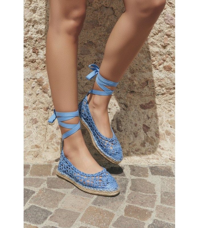 Never worn bought in Italy Blue lace up espadrille ballet flats Size Women 38