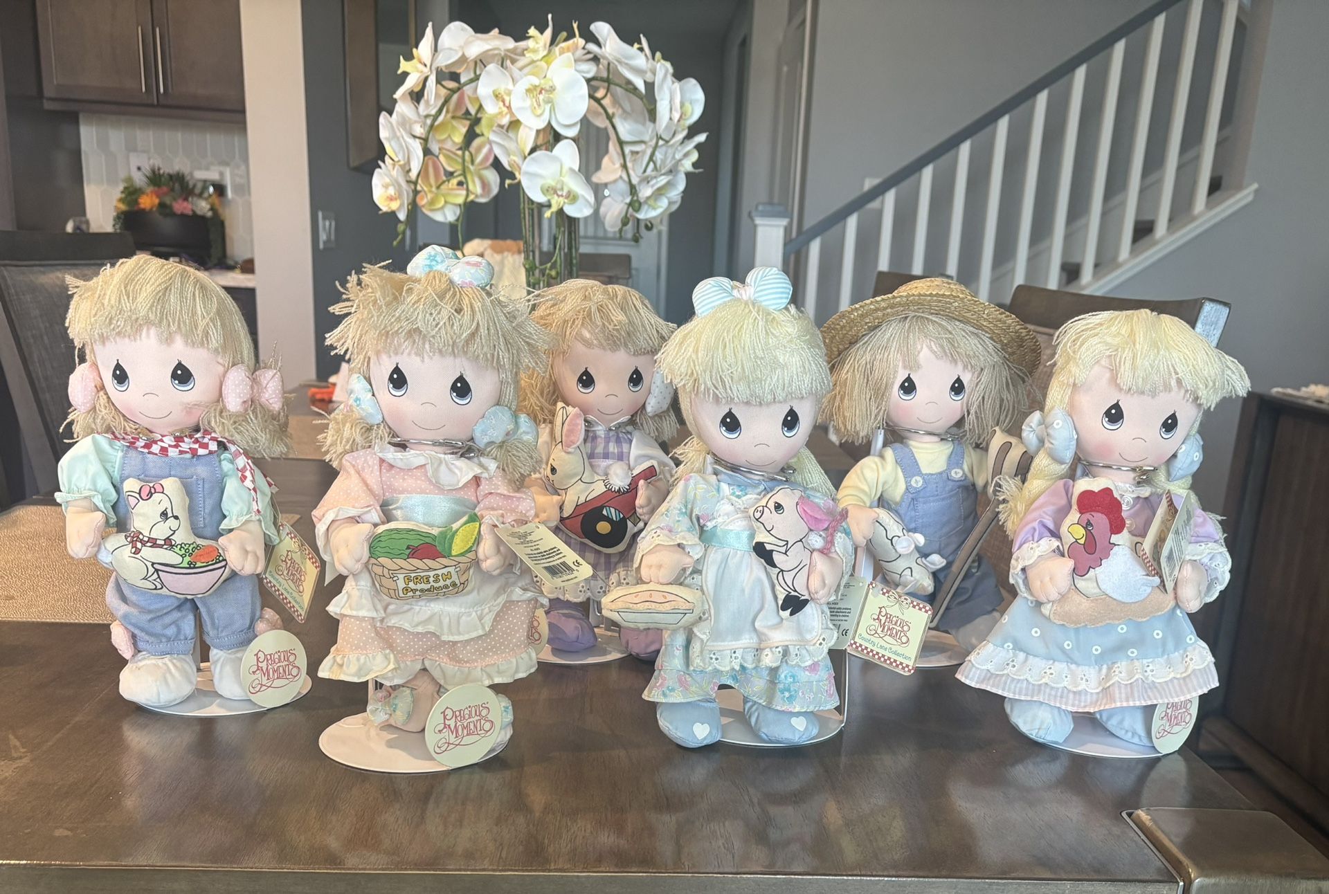 Beautiful Precious Moments Doll Set. Great addition to any collections and/or nurseries. In great condition with stands included.