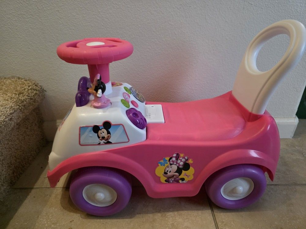 Kids Disney Minnie Mouse Light Up Push Car In good shape not perfect. It works and has batteries