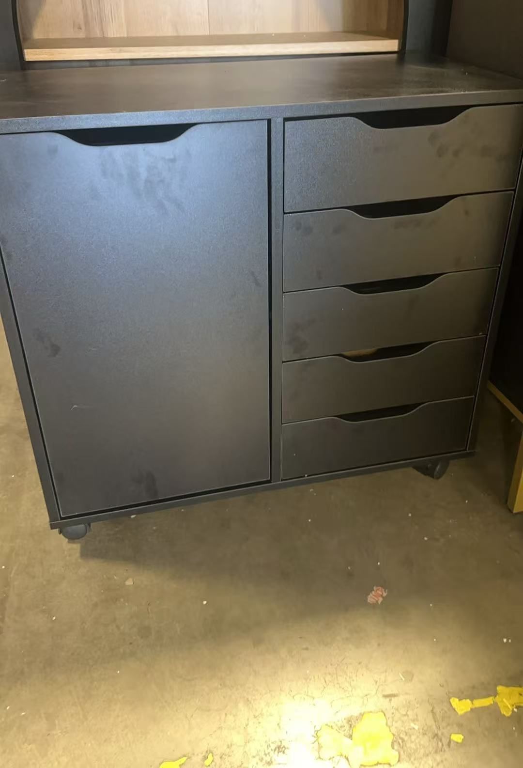 5-Drawer Chest with 1 Door, Wooden Chest of Drawers Storage Dresser Cabinet with Wheels, Office Organization and Storage, Bedroom Furniture (Black-S)$60