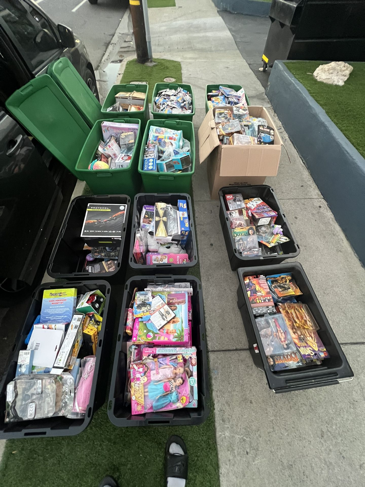 Not $1 and this is lots of toys and 1 bin alone huge amount of hot wheels message with serious cash offers on all 18 huge bins 12 bins loaded pictures and 6 bins at storage in North Hollywood CA