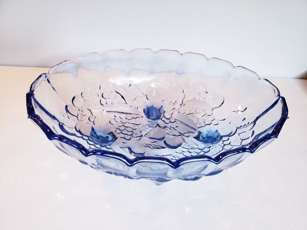 Indiana Glass Ice Blue Footed Fruit Bowl Harvest Grape Garland. Cross posted.