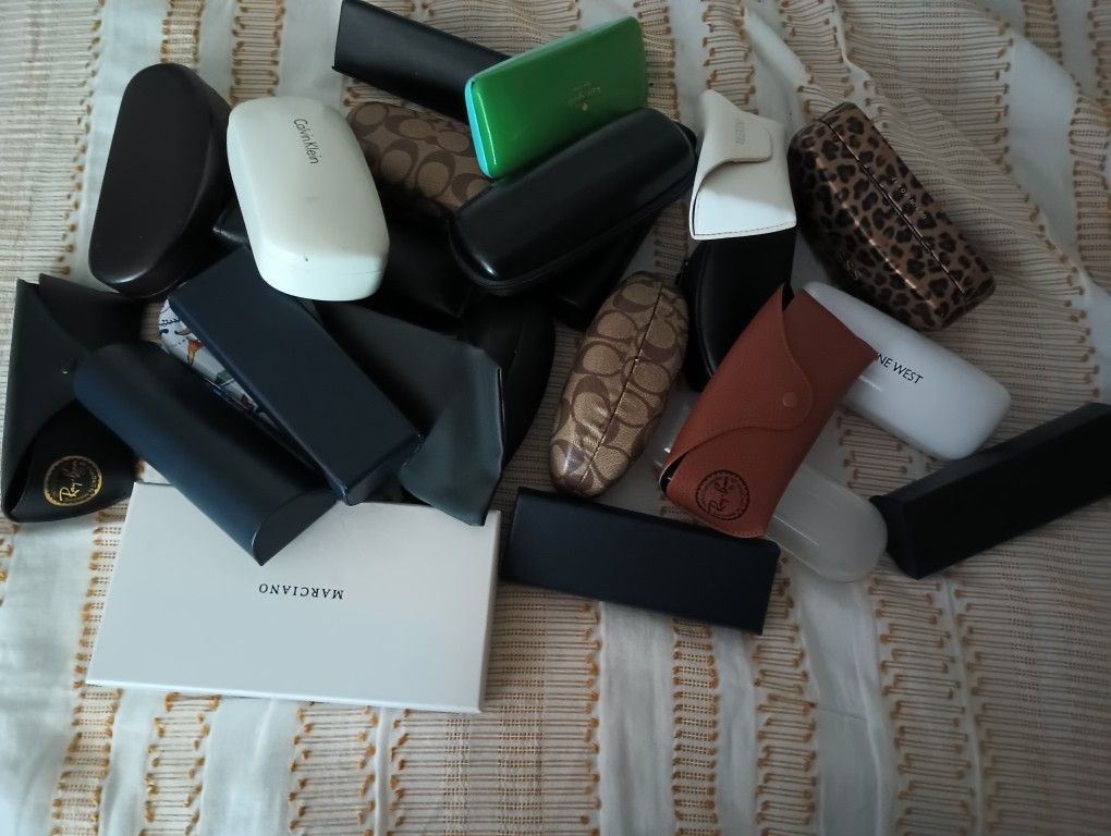 Lot of eyeglasses cases 1 thumbnailLot of eyeglasses cases 2 thumbnail condition: good make / manufacturer: RayBan Box of 24 eyeglasses cases from various name brands like Nike, RayBan,Brighton BeBe, warby Parker and many others. From a smoke and pet free home and most items show signs of normal wear but are all clean. Maybe a decent deal for someone who buys in bulk and resales them elsewhere. Asking price is for all 24 cases. *Disclaimer: I'm unsure of the authenticity of all the brands. * Cross posted*