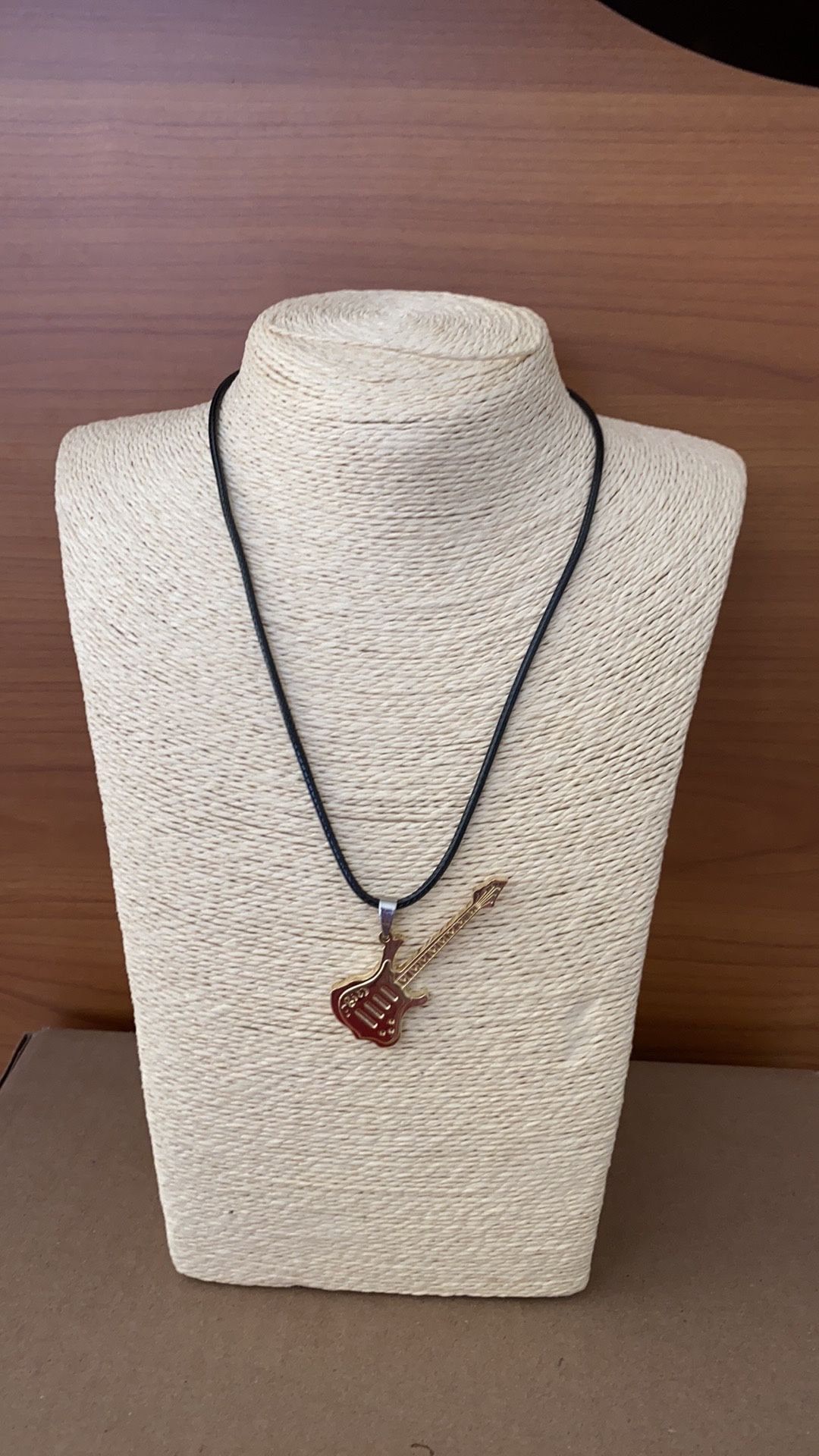 High quality men's stainless steel guitar gold-plated design pendant necklace with adjustable leather cord length 22 inches