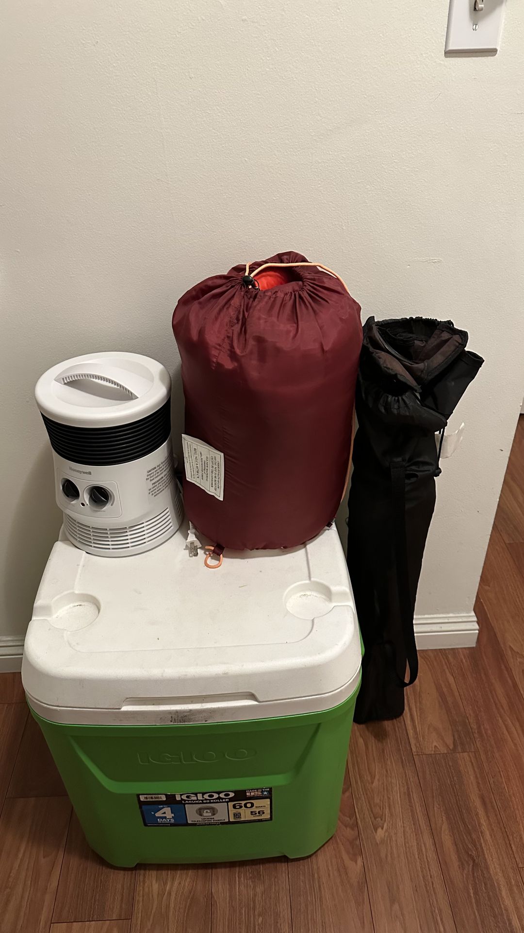 Moving out and selling my camping/outdoor bundle. Everything is in great condition and works perfectly. Price is firm. Includes: • Igloo Laguna Cooler • Honeywell Heater • Sleeping Bag • 2 Black Saucer Chairs (Foldable) TERMS: • Price: $55 FIRM (Please, no lower offers). • Pick-up only in Downey, CA. • First come, first served.