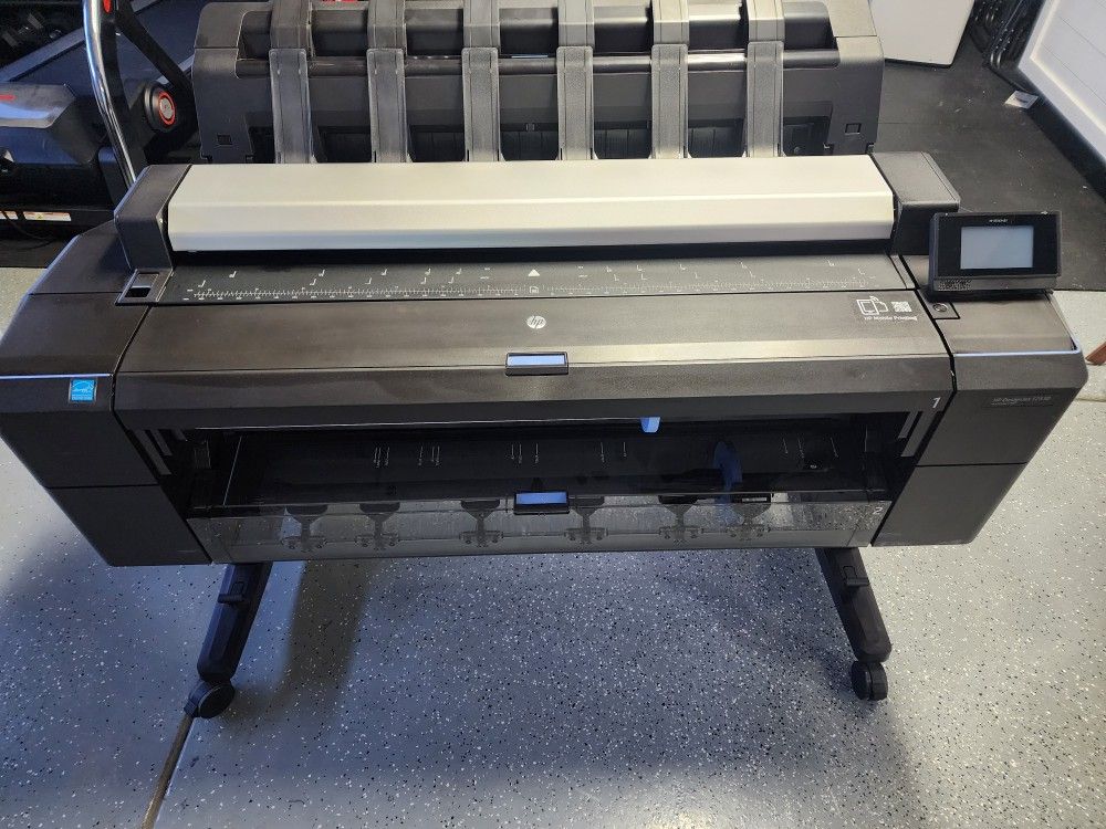We are offering an HP DesignJet T2530 dual roll with intergrated scanner, acquired from a liquidated contract, for sale. This unit has experienced minimal use, with a total output of only 28,000 square feet. To provide context, the initial preventive maintenance is not due until 320,000 square feet, indicating that the printer has utilized approximately 10% of its projected operational lifespan. The device has undergone internal preventive maintenance to ensure optimal component functionality. The firmware has been updated to the latest version, and a new printhead has been installed. Additionally, we will be supplying a backup set of inks for the machine. These machines are typically utilized by architects, construction professionals, engineers, GIS specialists, and project planners. I have observed their use in educational institutions for various innovative projects necessitating extended banner plots. For a small construction company, this device offers a significant advantage for on-demand blueprint printing. I am available to answer any questions you may have regarding this printer, as I have extensive experience collaborating with government agencies and architectural firms that utilize these devices. If you are new ti these types of printers or considering its acquisition, I would be pleased to offer free complimentary training on its operation, functionalities, and potential benefits. The HP DesignJet T2600, a newer model, features an enhanced display, though its internal mechanisms are consistent with this model. The T2600 typically retails for over $10,000. Given that a pre-owned model of this caliber generally sells for $3,500 to $4,000, we are offering this unit at half that price to optimize warehouse space. Technical specifications: Line drawings: 21 sec/page on A1/D, 120 A1/D prints per hour Handling Input: two automatic front-loading roll feeds, smart roll switching, sheet feed Output: integrated output stacking tray (from A4/A to AO/E, with up to 50 A1/D-size capacity), media bin, automatic cutter Scanner: straight-through scan paper path for sheet and cardboard originals Size Rolls: 279 to 914 mm (11 (minimum width) to 36 in (max width) Scan speed Color: up to 6.35 cm/sec (2.5 in/sec) Grayscale: up to 19.05 cm/sec (7.5 in/sec) Scan/ copy resolution Up to 600 dpi Maximum scan Size: 914 x 8000 mm (36 x 315 in) (JPEG) 914 x 5000 mm (36 x 197 in) (PDF) 610 x 15,000 mm (24 x 590.5 in) (TIFF) Applications: Line drawings, Renderings, Presentations, Maps, Orthophotos Copy: Reduction/ enlargement 25 to 400% Maximum copies Up to 99 copies Copier settings Copy quality, copy color, roll, content type, original paper type, background removal, contrast, de-skew, blueprints support Dimensions: (w x d x h) Printer 1399 x 916 x 1110 mm (55.1 x 36.1 x 43.7 in)